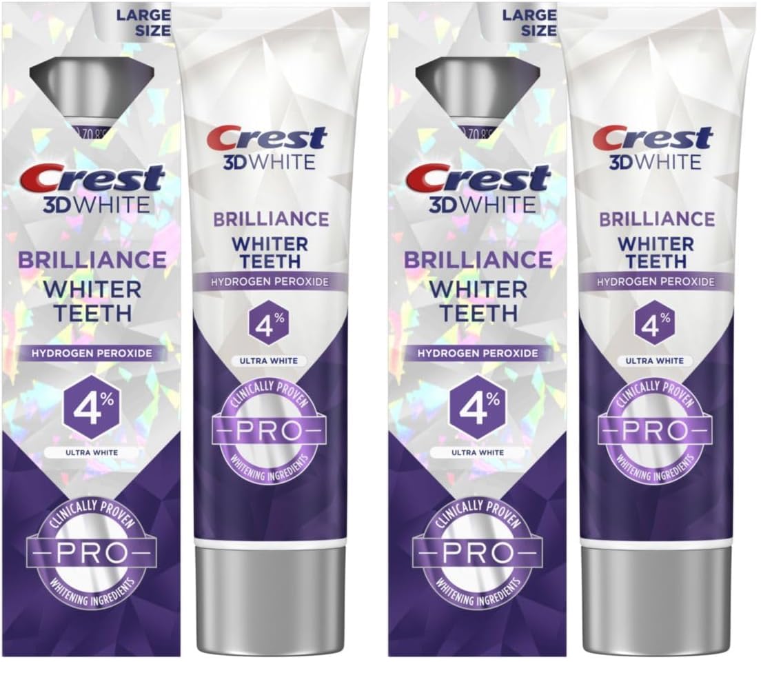 Crest 3D White Brilliance Pro Ultra White Teeth Whitening Toothpaste contains clinically proven whitening ingredients for whiter teeth that is enamel safe. Experience whiter teeth with Active Whitening Protection. Bring your brightest smile forward with Crest 3D White Brilliance Pro's 3X whitening ingredient system. This formula contains 4% hydrogen peroxide, our highest level in toothpaste, to remove stains and give you whiter teeth. From America's #1 Whitening Brand.* *P&G calculation based on U.S. reported sales data for the year ending w/o 6/11/2022.