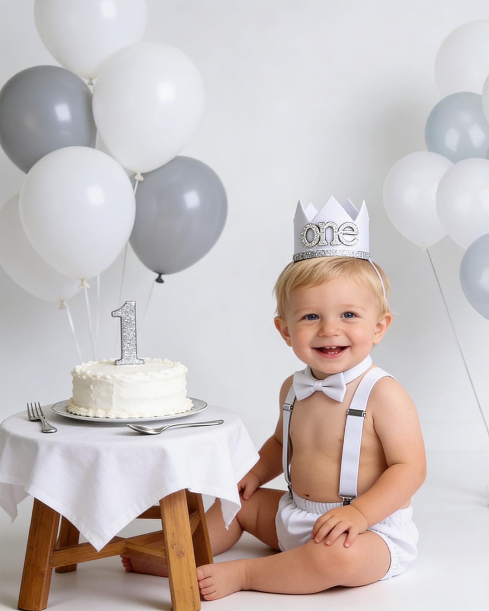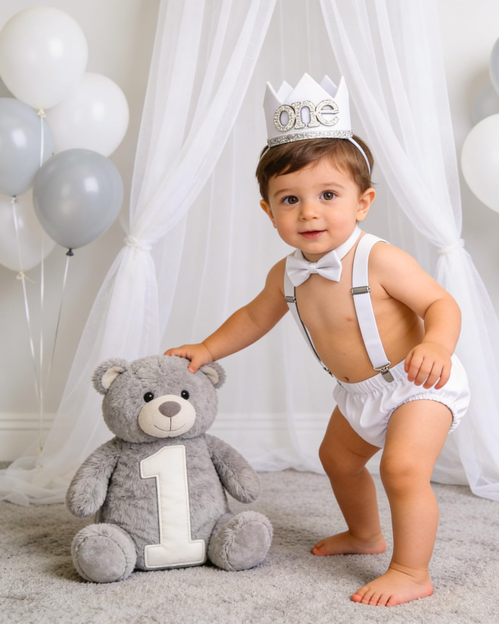 【Birthday crown 】- 1 Year Old Baby Boy First Birthday Crown Made of Soft Felt and Sequins Fabric, Sparkly Sliver Number 1 in the Center