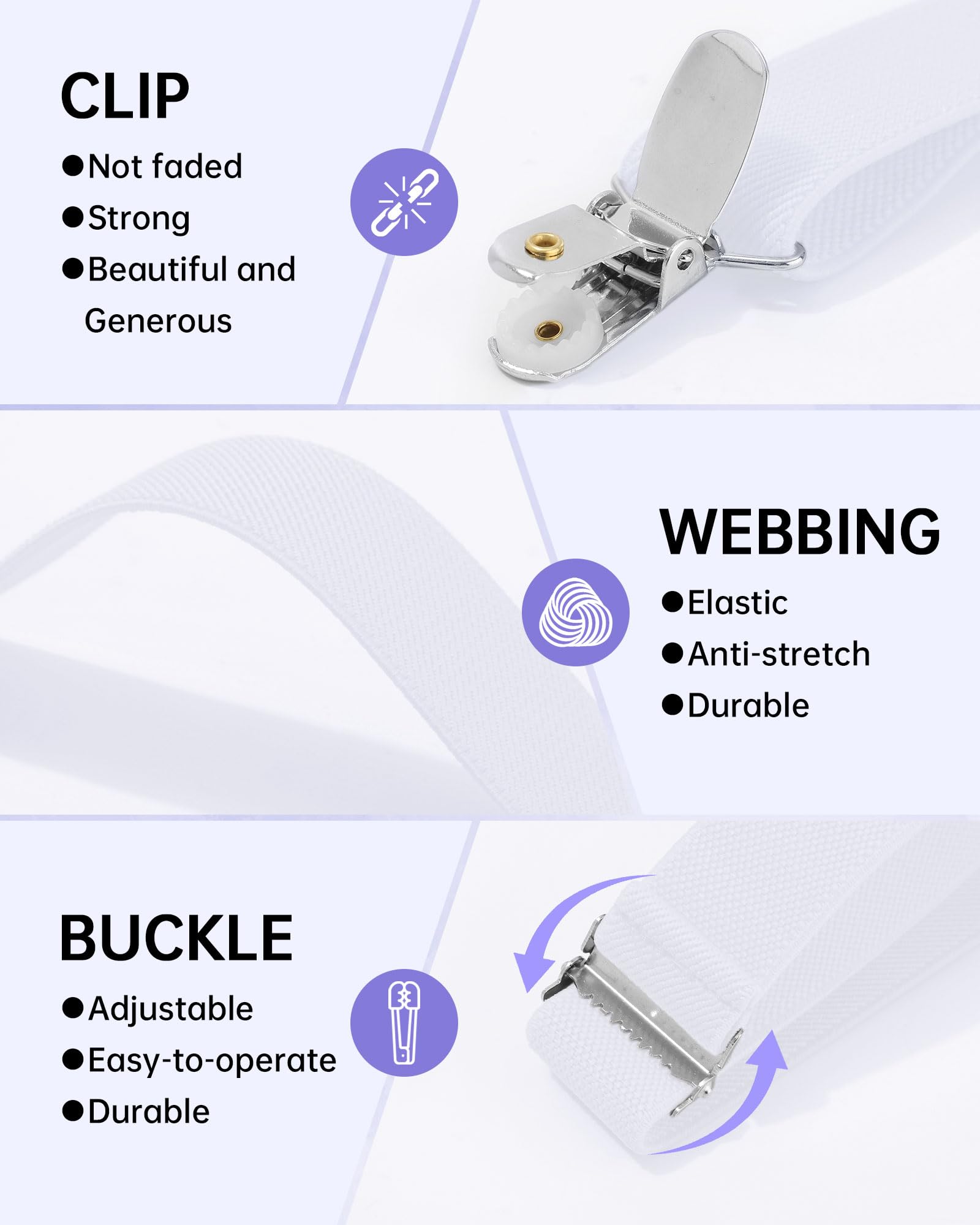 【The suspenders】: Made of 70% polyester+30% elastic. Traditional Y-back, fully adjustable. Can attach to the diaper cover or to any shorts, pants, girls denim skirt, etc. Can be used over and over again