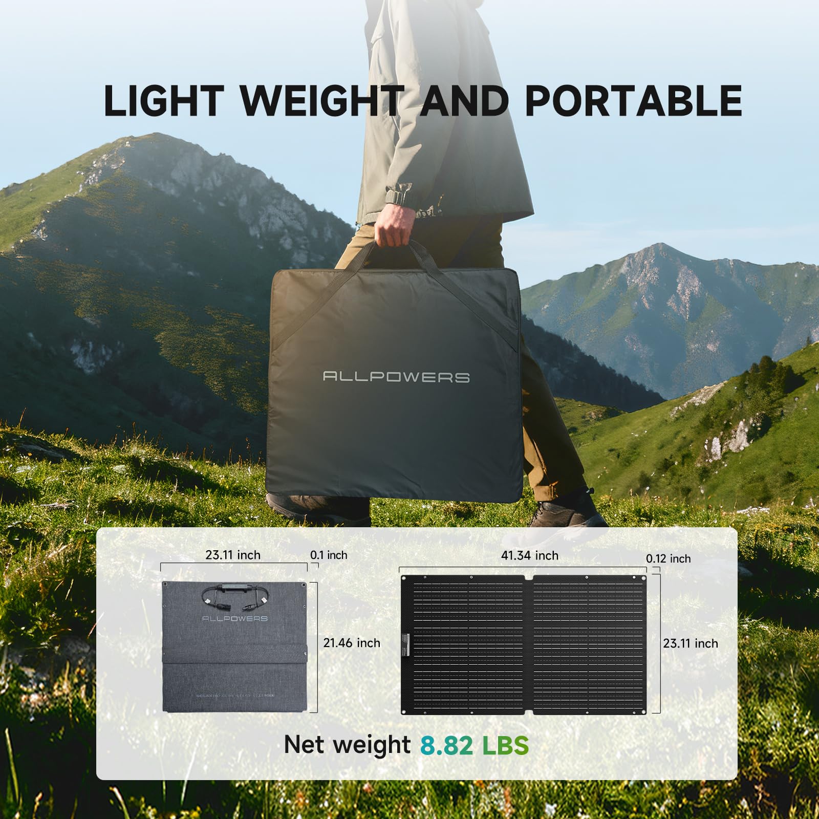 【Seamless Integration with ALLPOWERS Solar Generators】 This 100w solar panel is designed to perfectly pair with ALLPOWERS solar generator series, including the S200 (200W), SOLAX P100 (100W), S300 PLUS (300W), R600 (600W), R1500 LITE (1600W), S2000 PRO (2400W), and R2500 (2500W). This compatibility allows you to build a comprehensive and powerful portable power system for extended trips or emergency home backup, enhancing your energy independence.