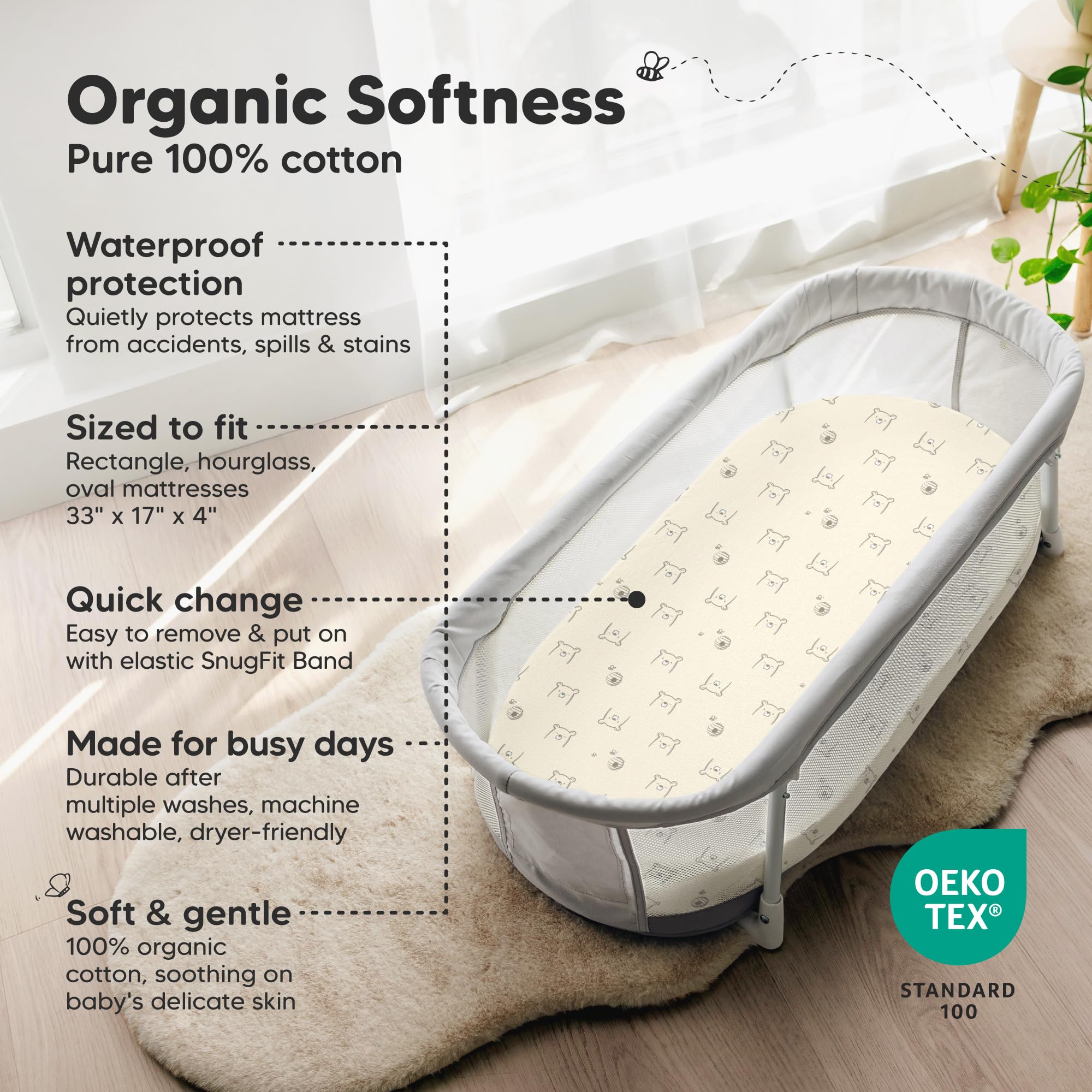 Durable & Long-lasting - Our waterproof organic cotton bassinet sheets for boys and girls are made durable to withstand multiple washes. Machine washable and dryable, these bassinet mattress covers are a baby bedding essential for modern parents.