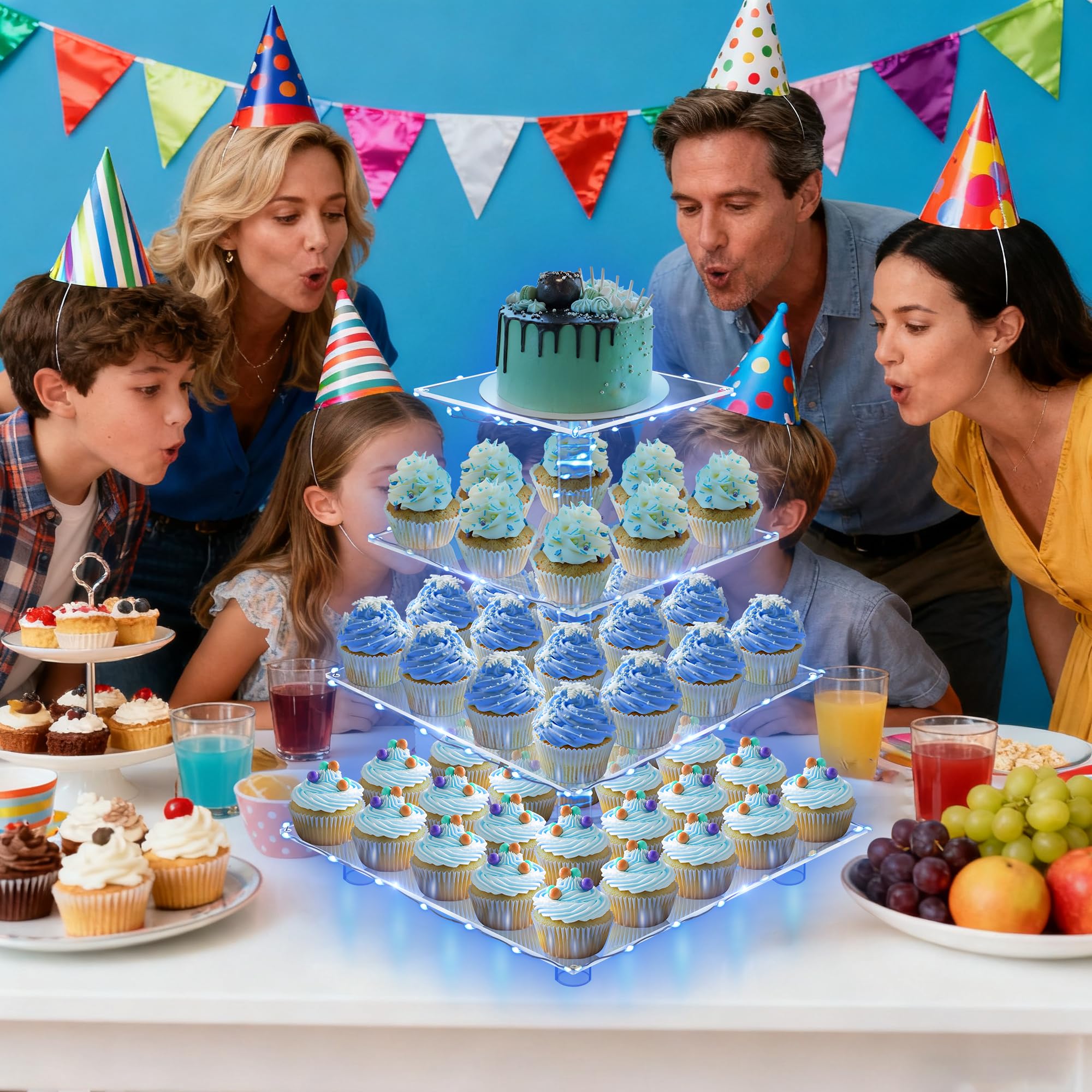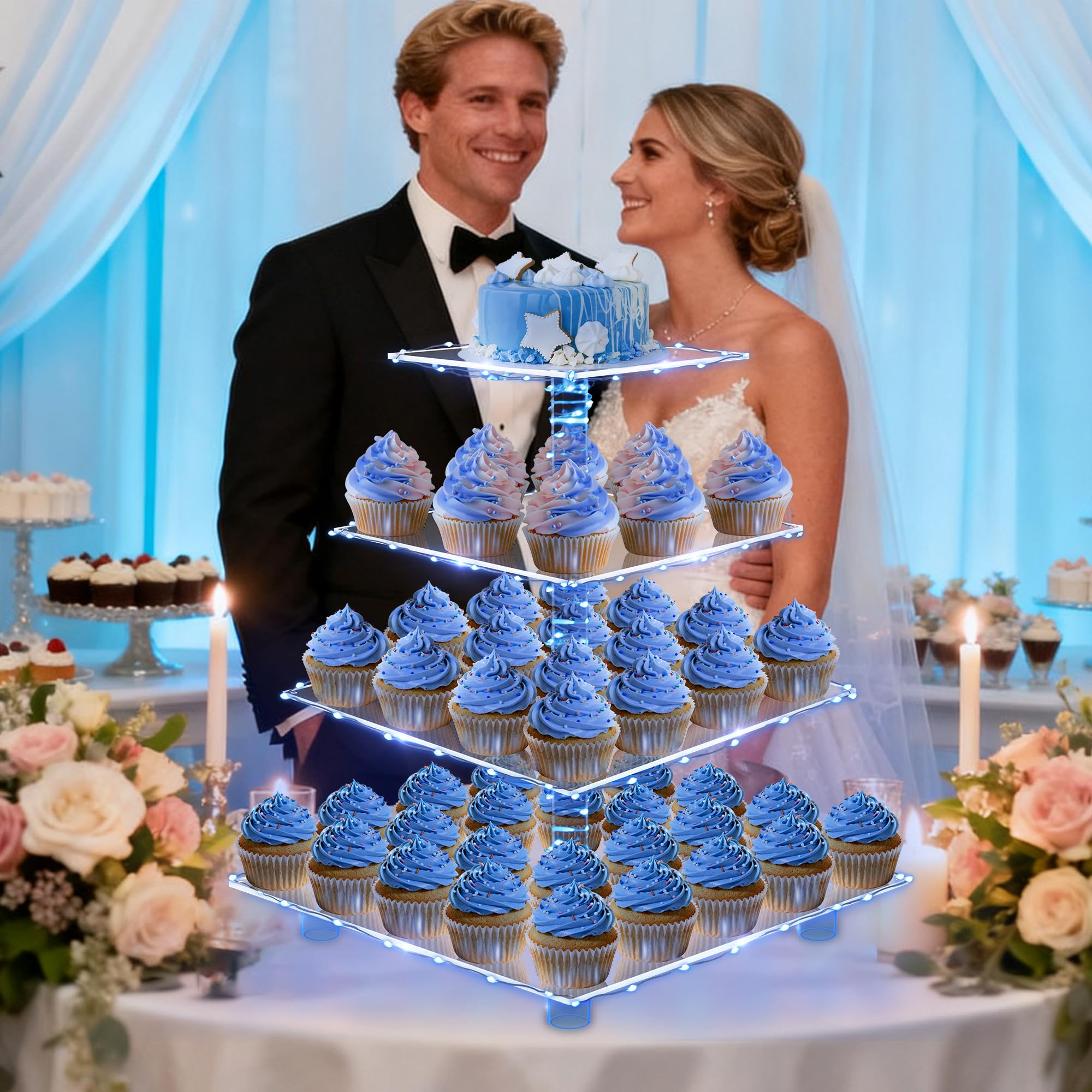 PREMIUM DESIGN: Our cupcake stand has four acrylic plates with 4” distance between them. You can remove any of the superior plates and reassemble them freely. Each pastry rack is made with premium 4 mm thick acrylic, being very durable and resistant.