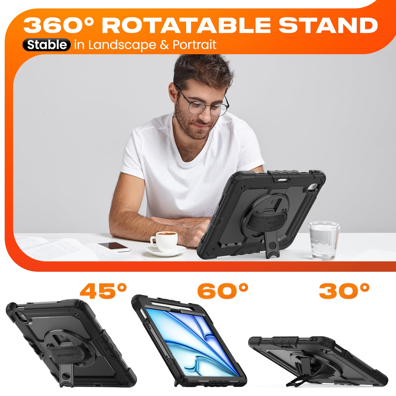 [Versatility Stand & Pencil Holder] With 360° rotating adjustable kickstand stable at multi-angles, case for iPad Air 11 inch M4 M3 M2 for viewing, typing or movie watching; With pencil holder easy storage for note-taking, case for 11-inch iPad Air case suited for classes/meetings, works or play with-kids