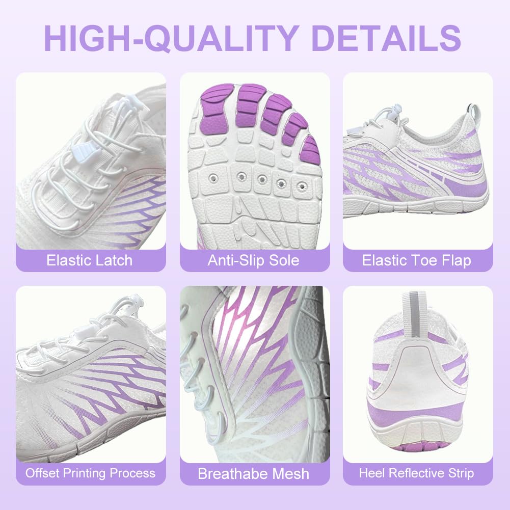 Wide Toe Box - Compared to the traditional trail running shoes, this women's barefoot shoe has a wider toe box design, which allows your toes to move and spread freely, promoting foot strength and flexibility. And this barefoot shoes has upgrade elastic drawstring allows you to quickly adjust the tightness of shoes and avoid the annoyance of tying your shoes.