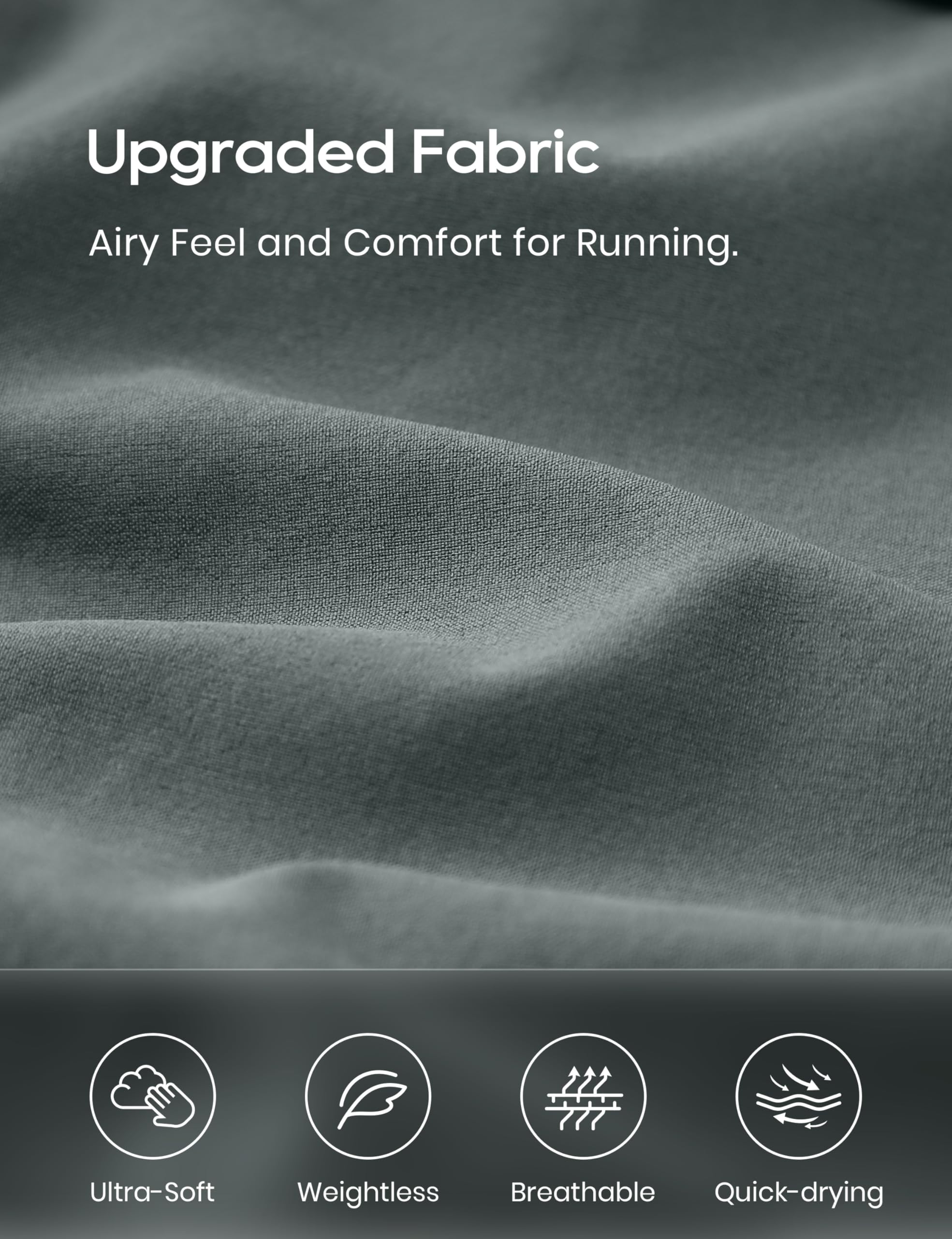 Feathery-Fit Soft Fabric: Ultra soft, weightless and quick dry, slightly stretchy, no swish-swish sound