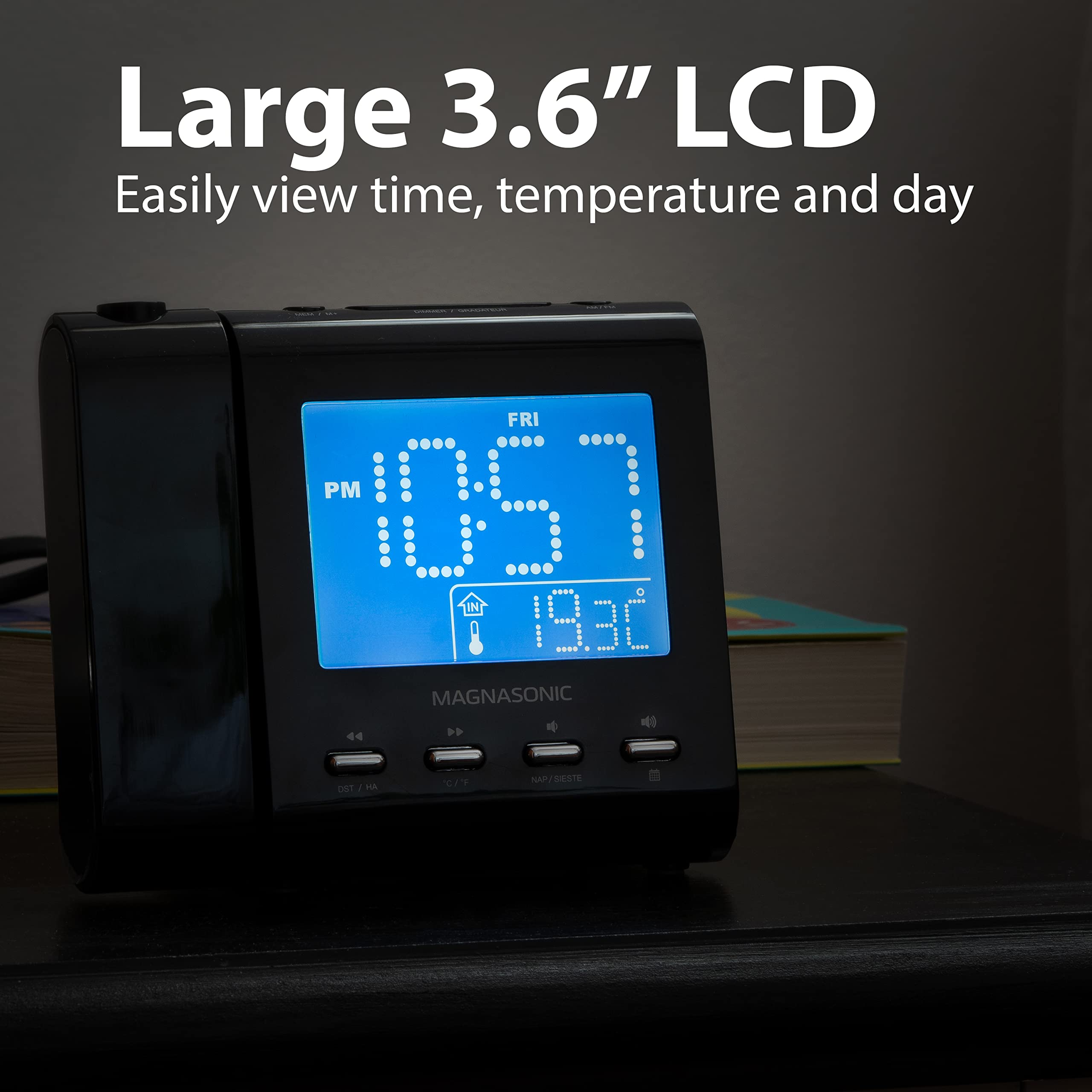 Feature-rich alarm clock radio that offers a large, crystal clear 3.6" blue LCD display that can be dimmed to adjust to your brightness preference