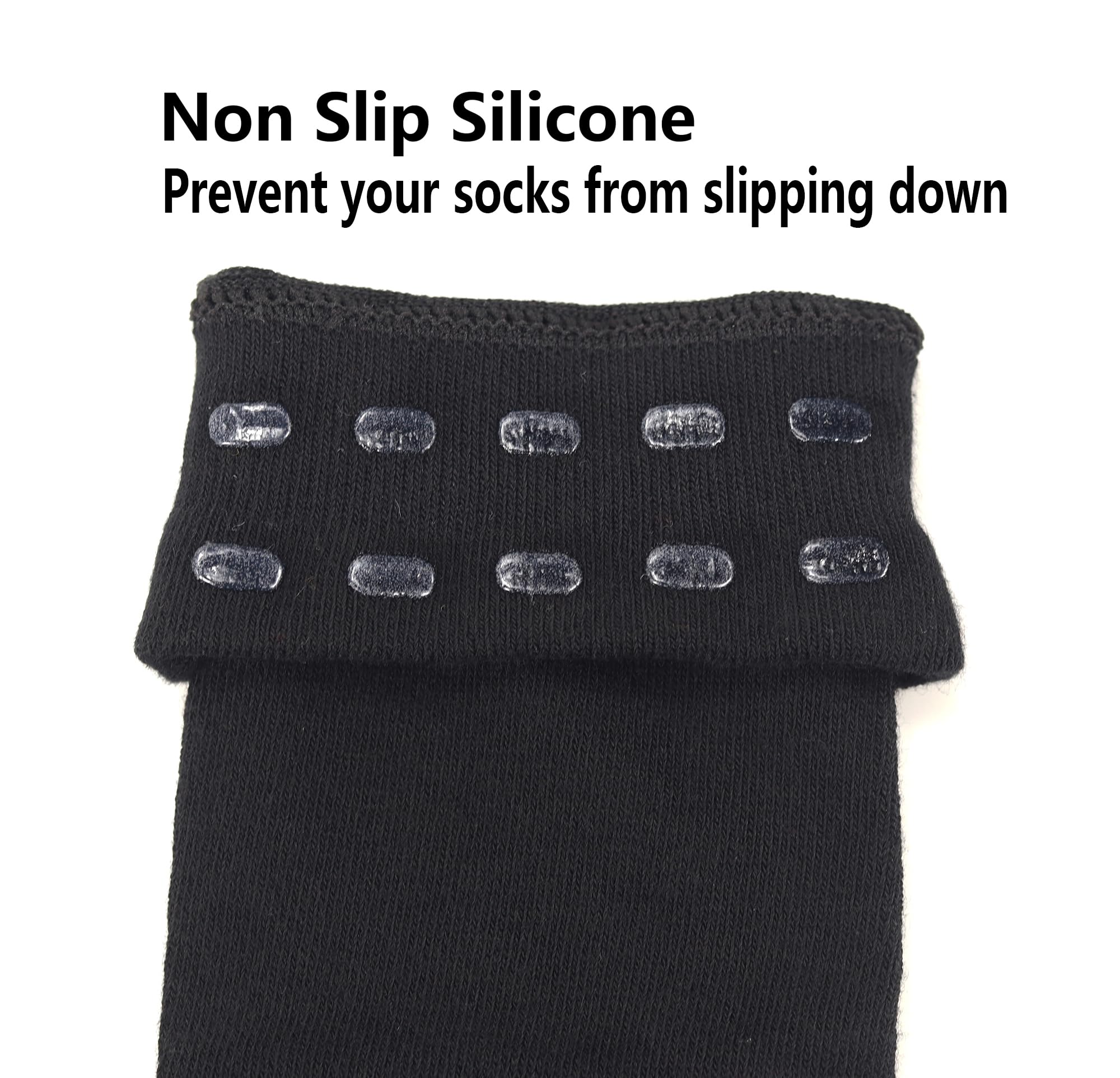 Anti-slip:The top of the fall/winter socks features a silicone anti-slip design, preventing your socks from slipping down