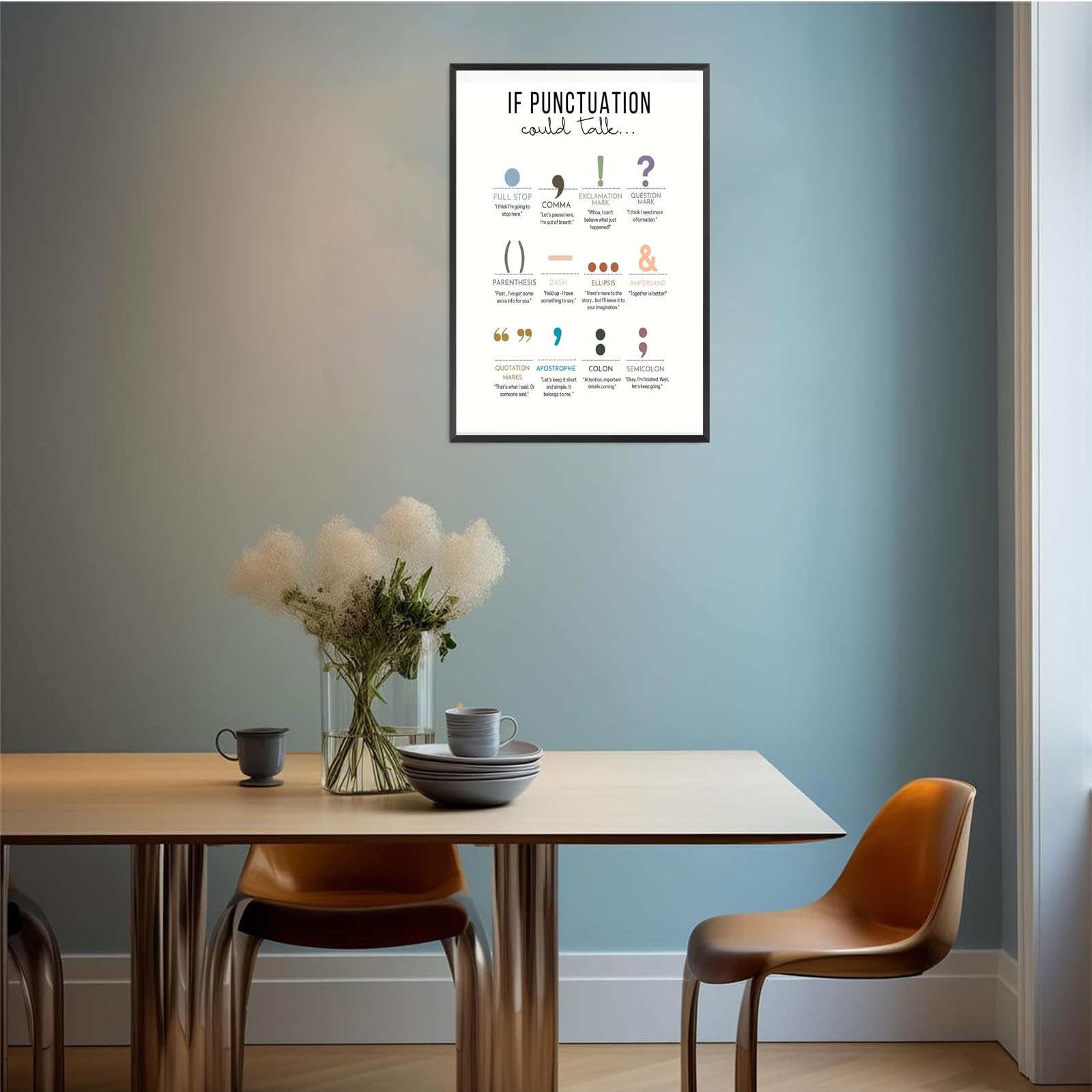 Boho Style Design: Elevate your space with the unique and stylish "If Punctuation Could Talk" posters, designed in a trendy boho style that adds an artistic touch to any room.