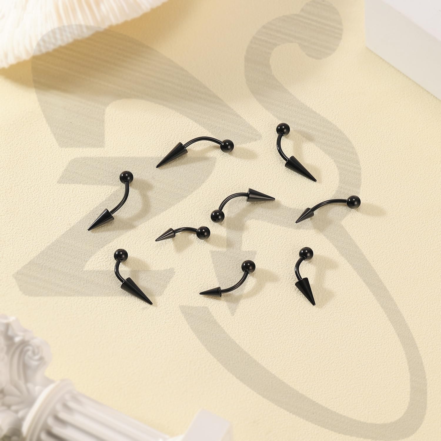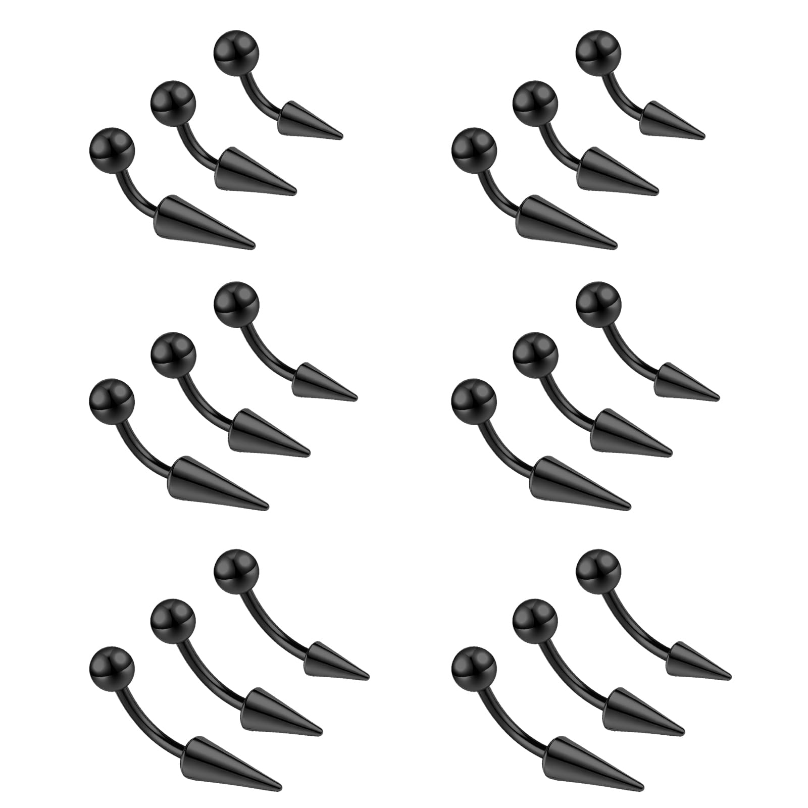 ❀Spike Eyebrow Piercing Size——Spike ecurved barbell piercing jewelry gauge: 16g(1.2mm); Rook jewelry bar length: 6/8/10mm. Lip jewelry Ball/ Cone Size: 3/6/8/10mm. Be careful the spike lip piercing long cone when using.