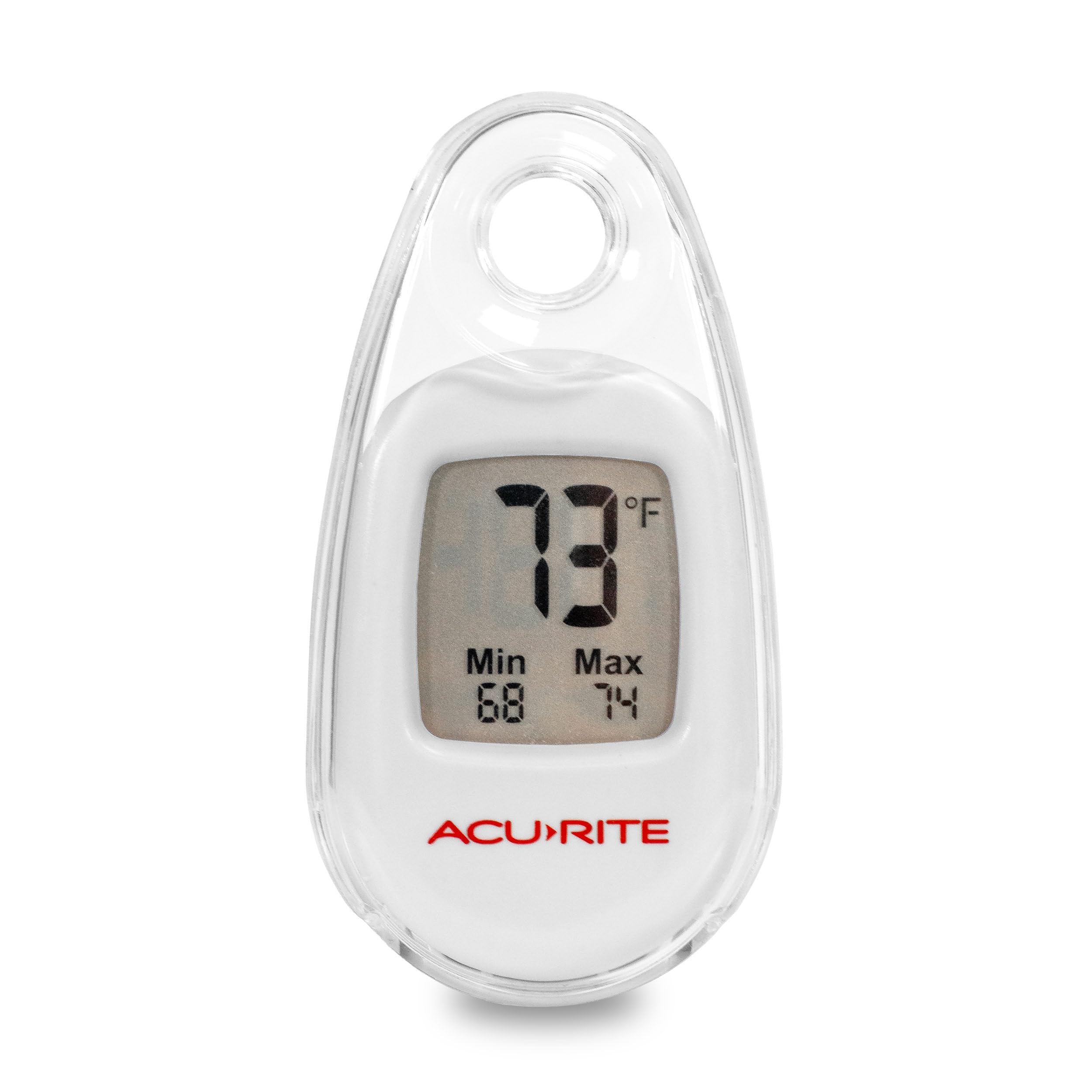Take temperature knowledge wherever you go with the AcuRite Digital Thermometer with Carabiner Clip! Whether you clip it on a backpack, purse, stroller, pet carrier, or even on a hook within your home, you’ll always have quick access to accurate temperature measurements at the thermometer’s location. Perfect for use as a camping, boating, or garage thermometer, the weather-resistant design and aluminum carabiner clip add a level of durability not always present in indoor/outdoor thermometers. The digital display also provides daily high and low temperatures that reset every 24 hours, which could be helpful if utilized as a food service or restaurant thermometer. This portable thermometer includes a CR2032 button cell battery and comes with a one-year limited warranty. *Carabiner is NOT intended for climbing use of any kind.