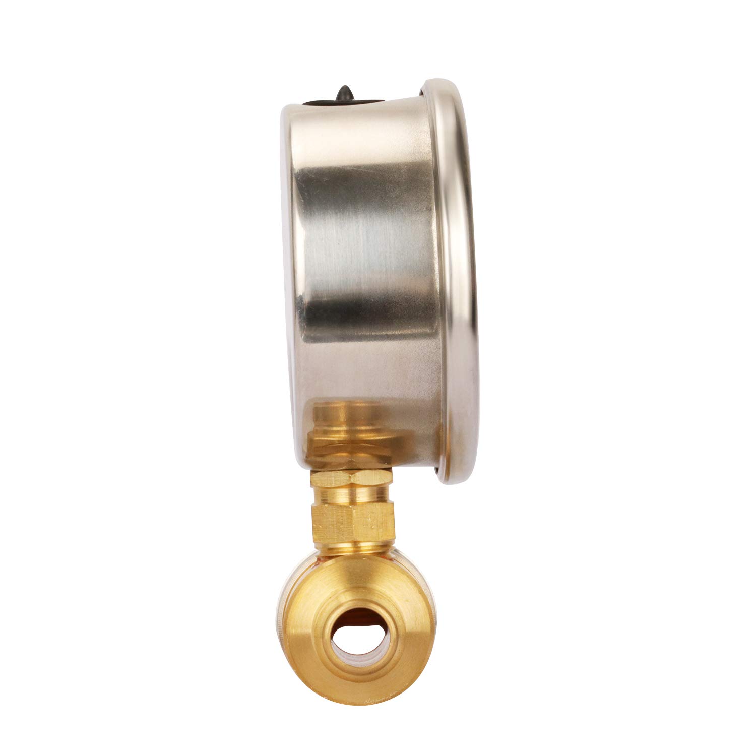 2-1/2" dial size, stainless steel case and brass wetted parts