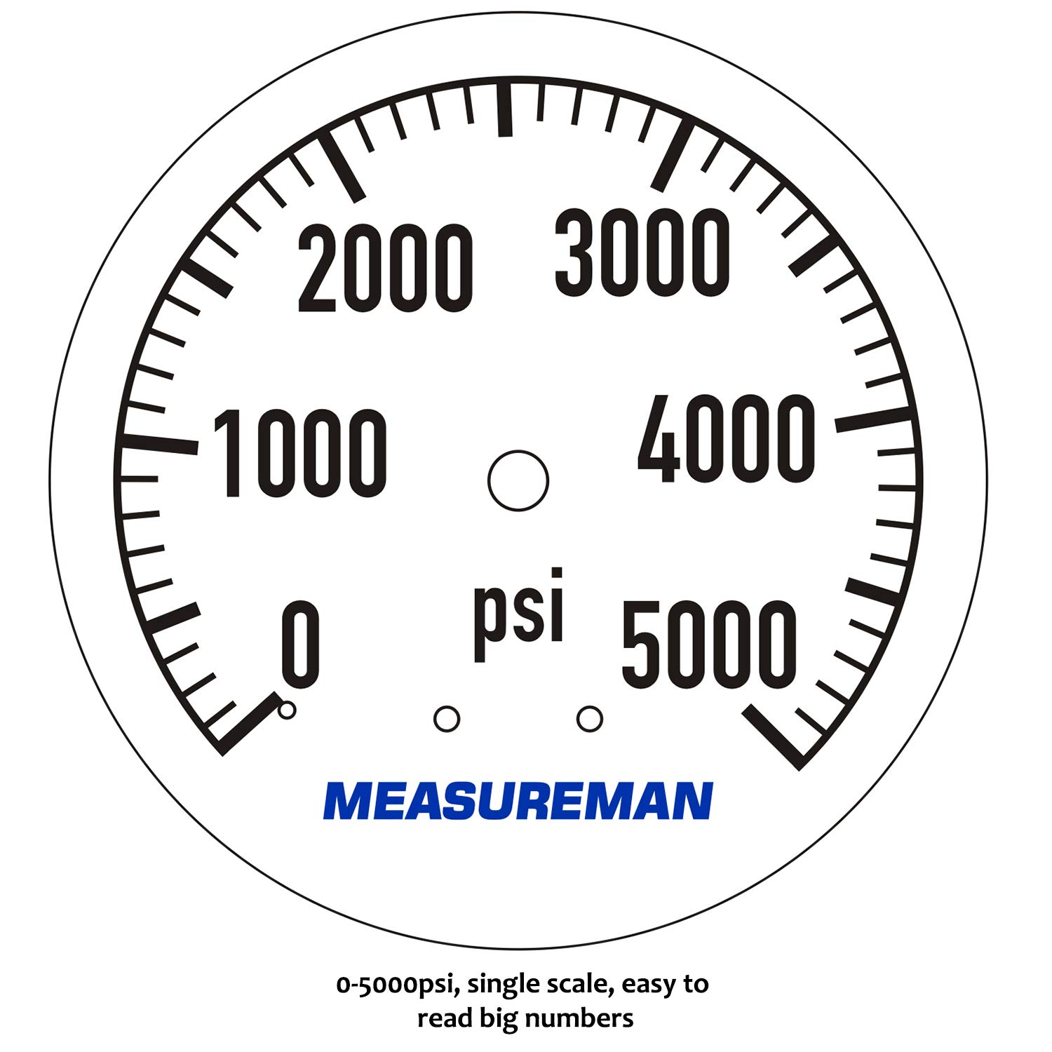 Easy to read, 0-5000psi single scale, glycerin oil filled for vibration proof