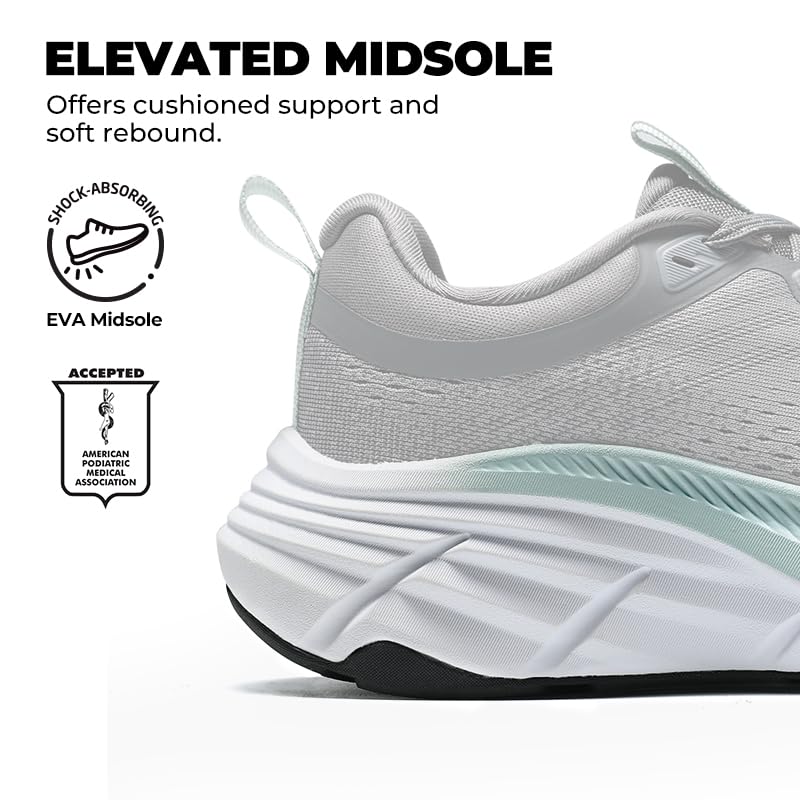 Exceptional Cushioning: These women’s walking shoes are well-cushioned. The thick EVA midsole provides a cloud-like feel, absorbing shock and reducing impact on joints, making these women’s sports shoes ideal for daily walks and workouts.