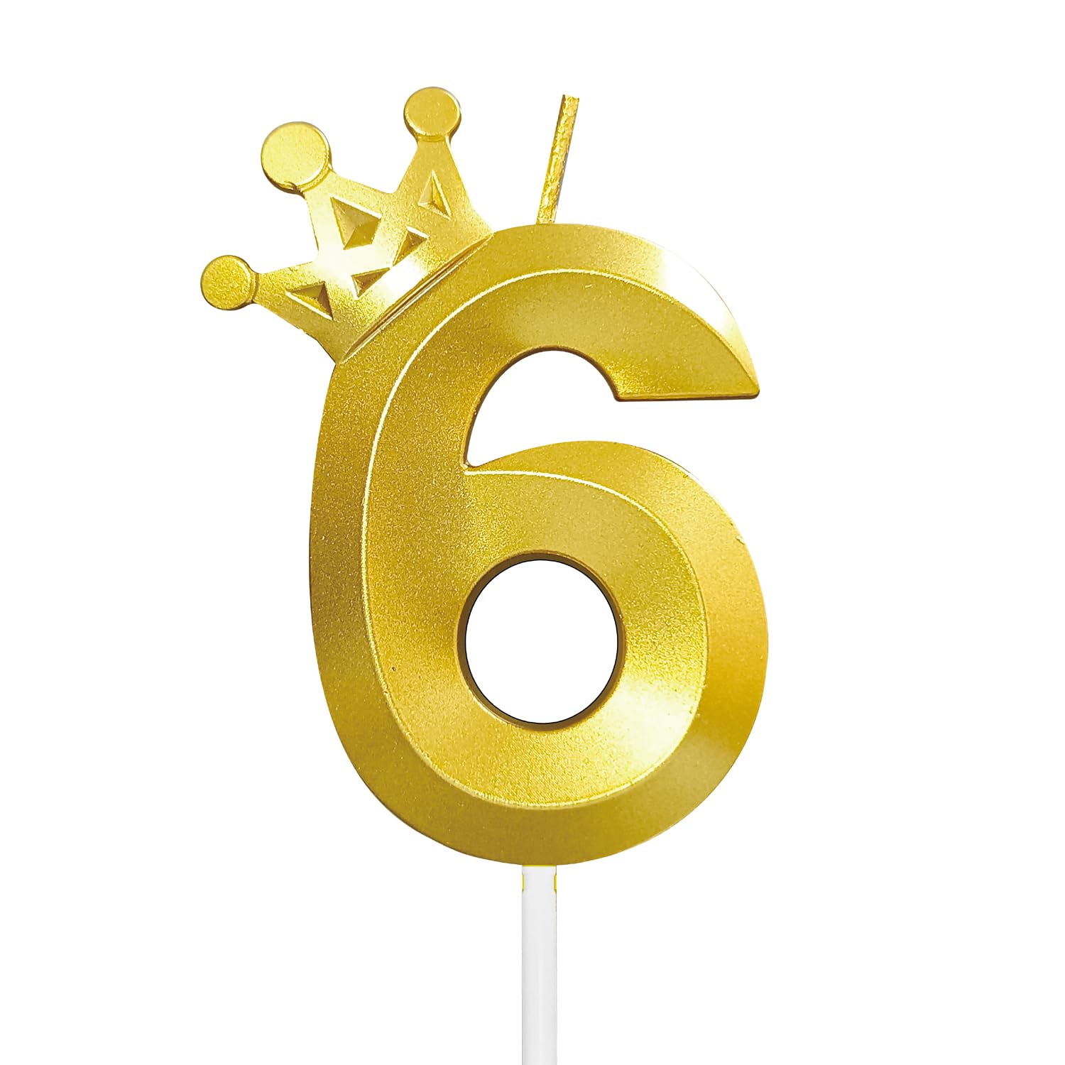 Jumochi 3D Crown Birthday Number Candles You don't need to have great cake decorating skills, you can still make your cake look beautiful with our candles. Pros: The size is suitable for lots of cakes. The bright gold color is beautiful. The little crown is cute. Long plastic stick do not easy to tip over. It is washable and reusable. Burns slowly, you can keep the candle in a memory box after birthday. Good Packaging. Candle came in a sturdy box, placed within a plastic insert that cradled the candle safely. Versatile Number Candles: You can buy birthday candles of all ages, even if you don't want others to know your age, you can choose question mark ? candle. Material: Wax Candle Dimension including stick: 5.7 x 2.25 x 0.4 Inches Weight: 0.1 lbs Whatβs in the package: 1 Numeral Candle Be careful - Numeral candles are flammable. Keep away from fire when candles are not in use. Keep away from children when candles are burning.