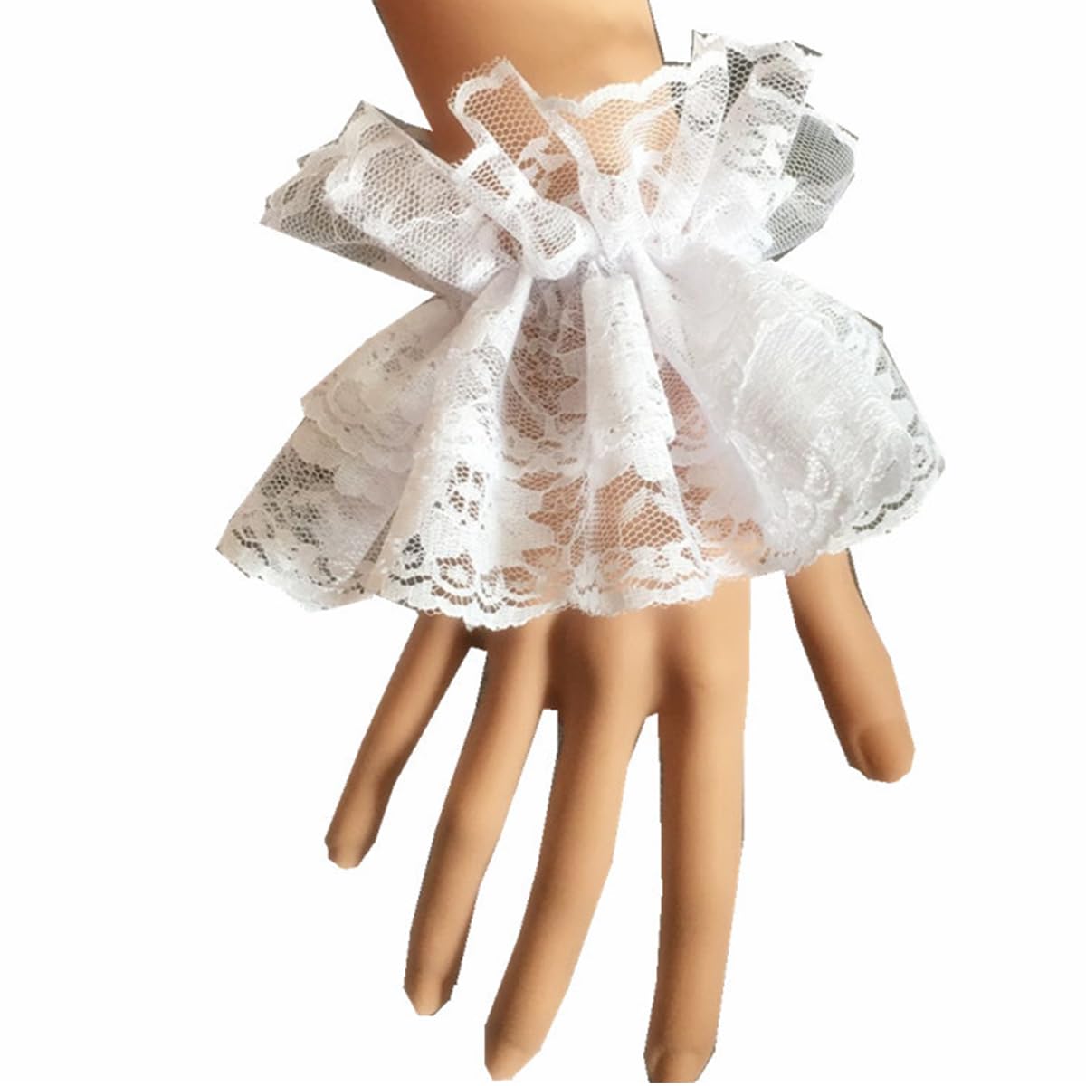 Gloves: White lace hand sleeves with double lace, the perfect costume accessory