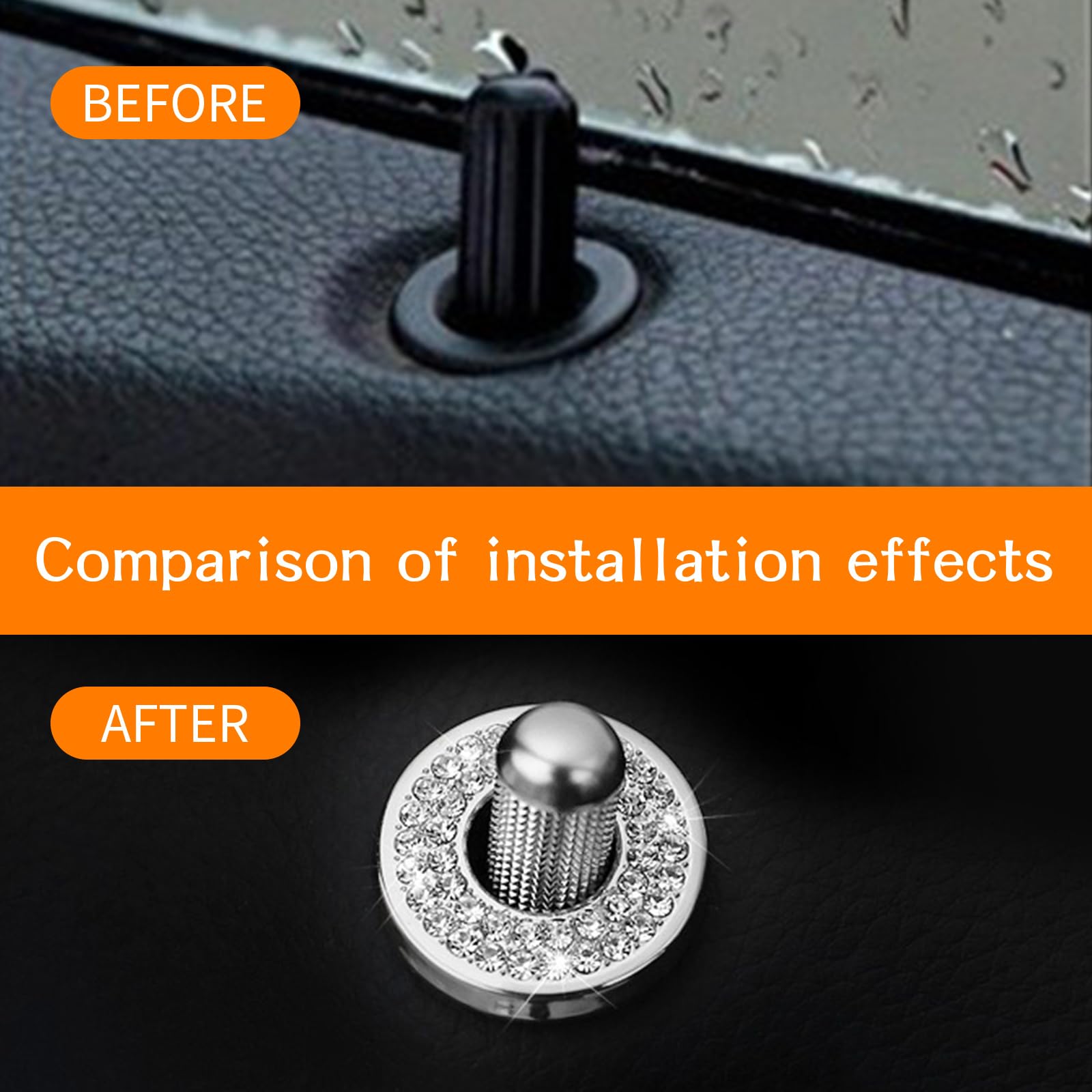 1 Pack 4 Pcs Bling Car Inner Door Lock Covers, Car Bling Accessories For Women Rhinestone ,Rhinestones Pull Rod Bolt Decoration Covers Compatible With Mercedes-Benz A,B,C,D,E Class, Gla, Glc, (Silvery)