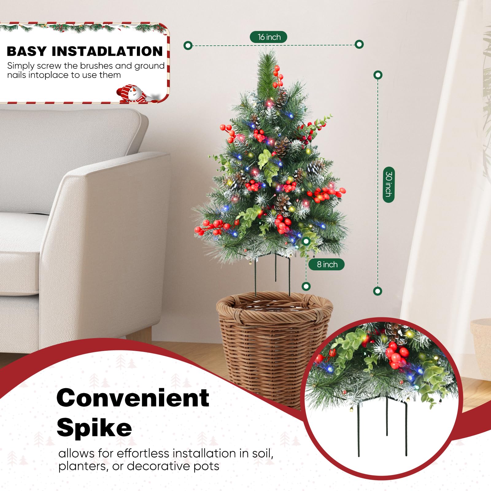 【Convenient Ground Spike for Easy & Stable Setup】Forget about cumbersome tree stands! Our innovative ground spike design allows you to securely anchor this artificial tree directly into your lawn or a planter filled with soil. It ensures remarkable stability, even outdoors, and makes installation a quick and one-person job.