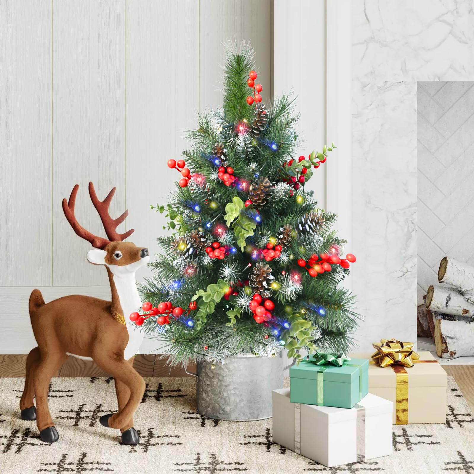 【All-in-One Decorated with Lights & Ornaments】This stunning pre-lit Christmas tree comes fully equipped with energy-efficient LED lights and is pre-decorated with beautiful Christmas berries and pinecones. It offers a complete, luxurious holiday look the moment you set it up, saving you significant time and effort on decorating.