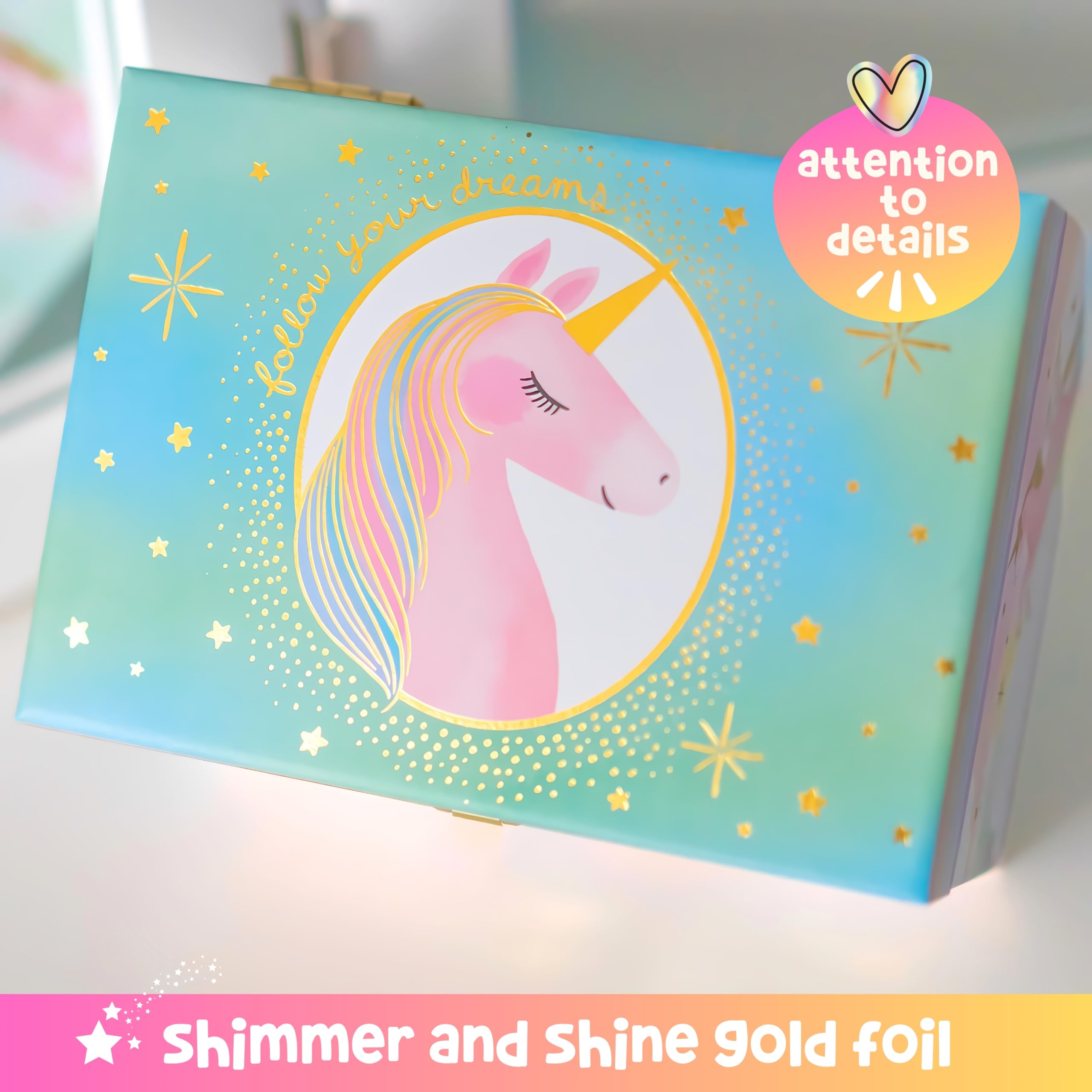 Elegant Design - Elevate your daughter's unicorn décor with an exquisitely designed jewelry box for little girls. The intricate details on the kids jewelry boxes are crafted by curated artists & boast dazzling unicorn details that captivate and charm