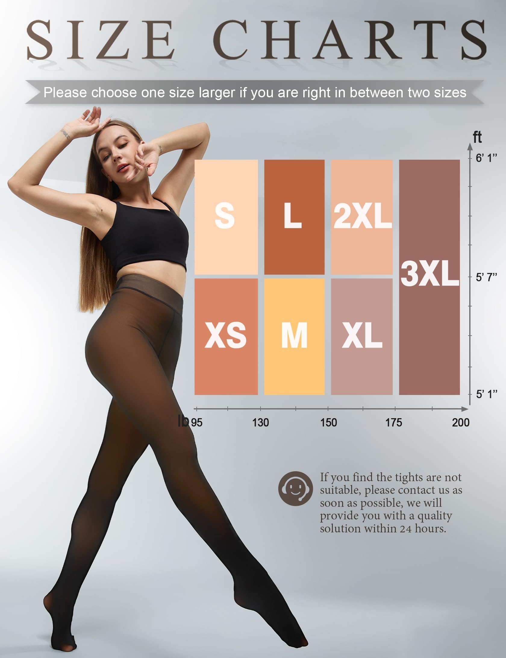【SIZE UPGRADE】: Thermal pantyhose come in 7 sizes XS-3XL, for women of all shapes and sizes, you can follow the size chart to choose size that suits you best. Sheer fleece lined tights can be well match with skirts, wool coats, denim skirts, sweaters, boots and high heels. Perfect Gift for your wife, mother, friends and anyone you love