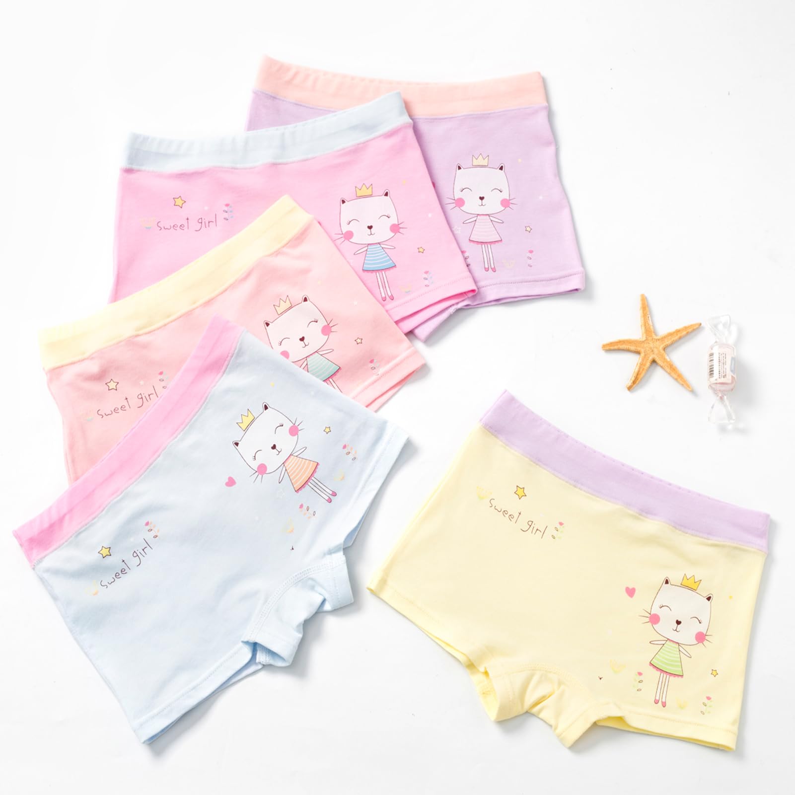 1. Perfect Fit & Size Options 10 pcs/pack of girlsβ boxer briefs in 5 sizes (Medium to XXX-Large), covering ages 2-14. Elastic waistbands ensure easy wear/take-off during potty training, while the stretchy cotton-spandex blend (95% cotton, 5% spandex) adapts to growing bodies without losing shape.