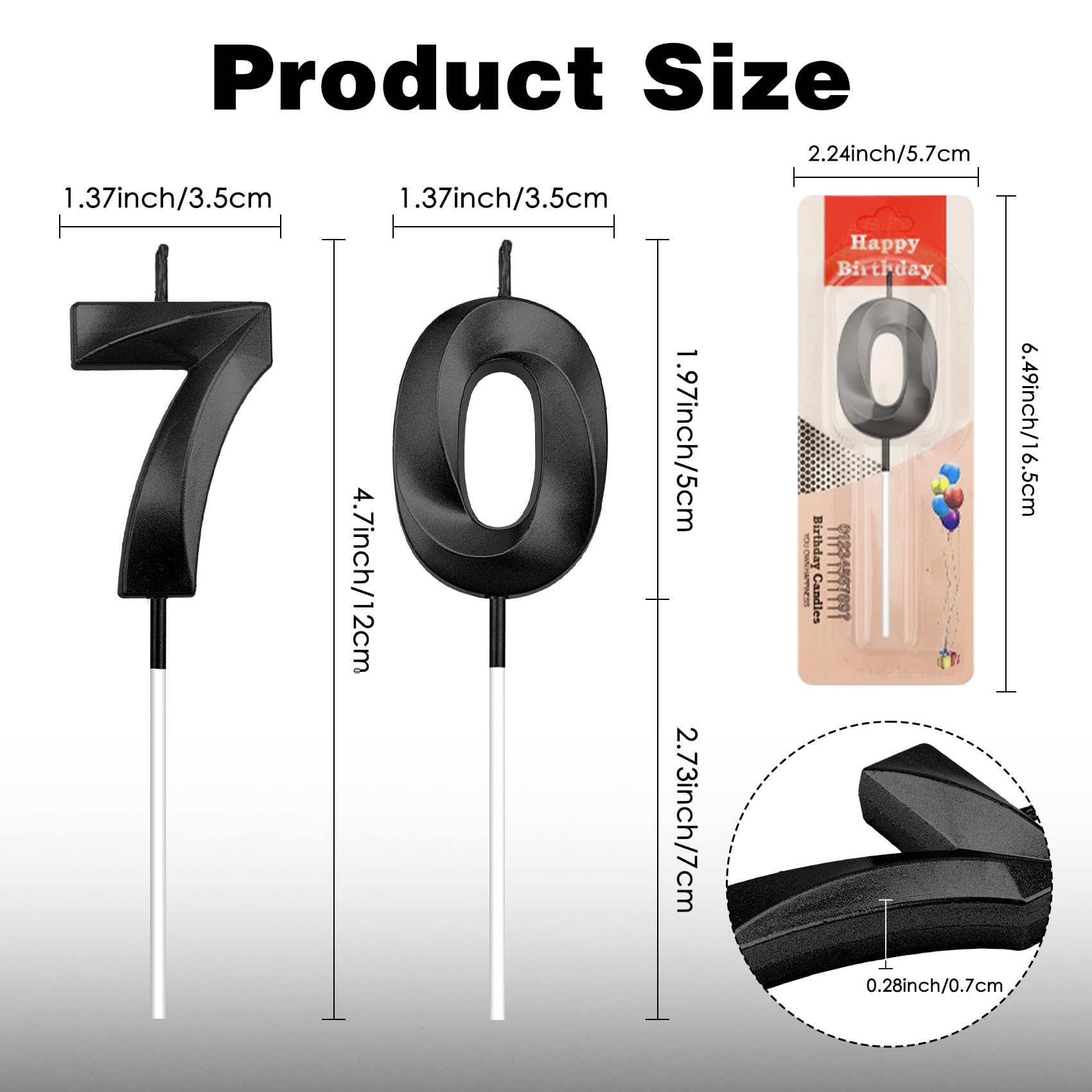 Package Include: You will receive 1 pcs black number 70 birthday candle. Each numeral candle is packaged in a separate tight plastic box, which is more protective can effectively prevent the candle from being crushed, can meet your birthday party needs. Exquisite and beautiful appearance, you can use it decorate your birthday party