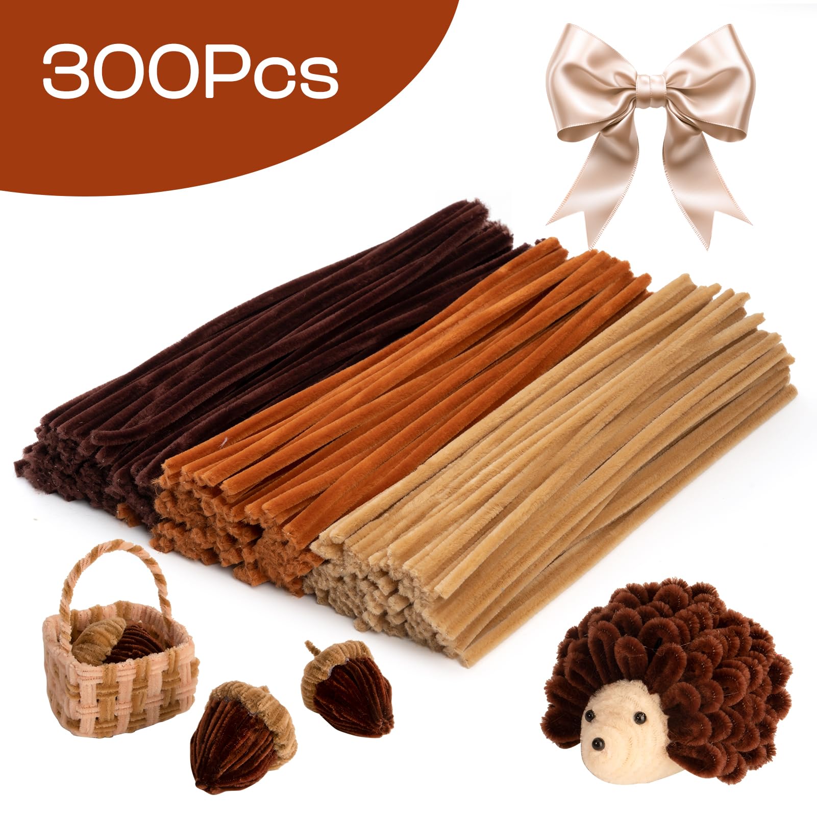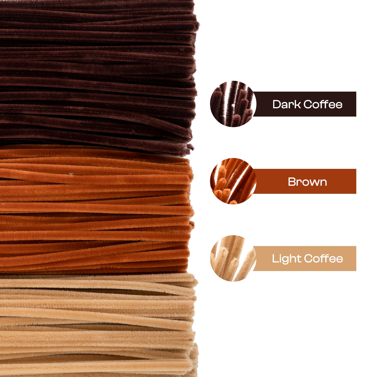 Value Package: Coming with 300 pieces pipe cleaners in different shades of Brown(Dark Coffee, Brown, Light Coffee)and 1m champaign color ribbon; Each shade comprises of 100 pieces, providing a diverse range for your crafting and decorating needs; The multicolor variety makes it attractive and appealing