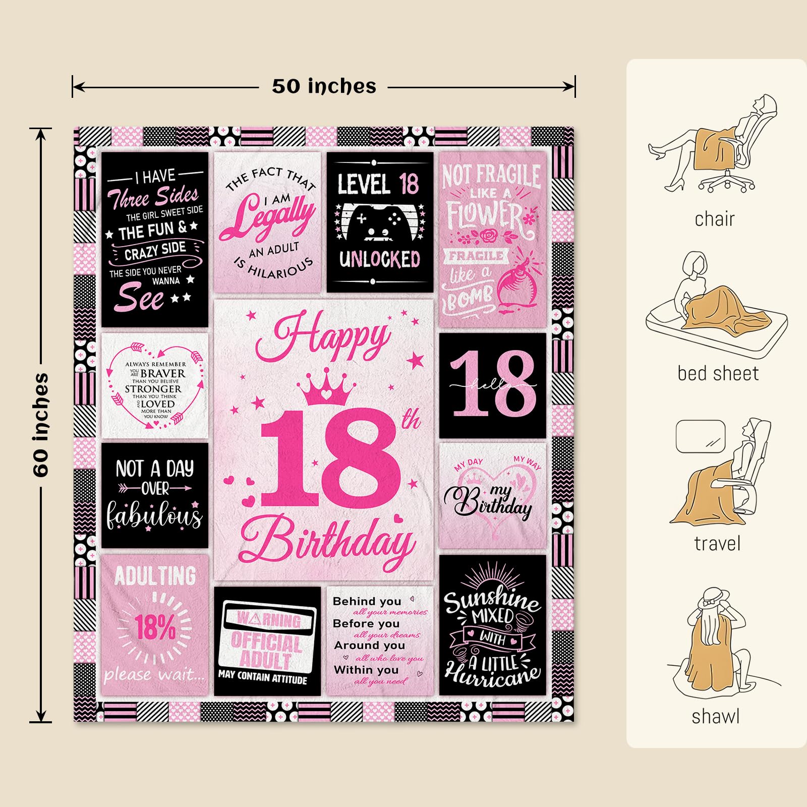 18 YEAR OLD GIRL BIRTHDAY GIFTS: 18 is a new beginning, to celebrate the girl is about to start a new chapter in her life, give it to your daughter, granddaughter, sister, niece, to express your love for her, when she sees this special gift will remind her of you, this is not only a blanket, but also a kind of spiritual support.