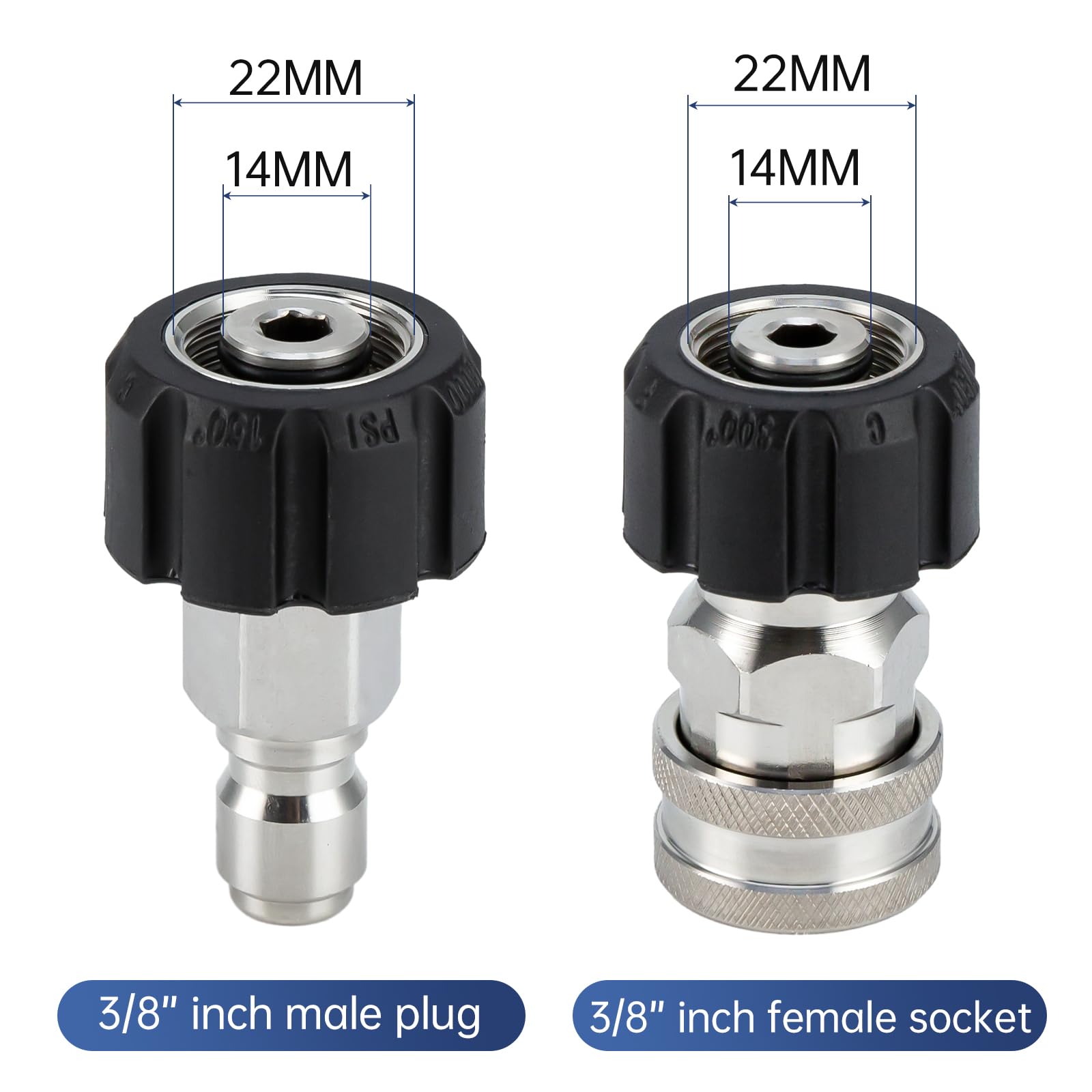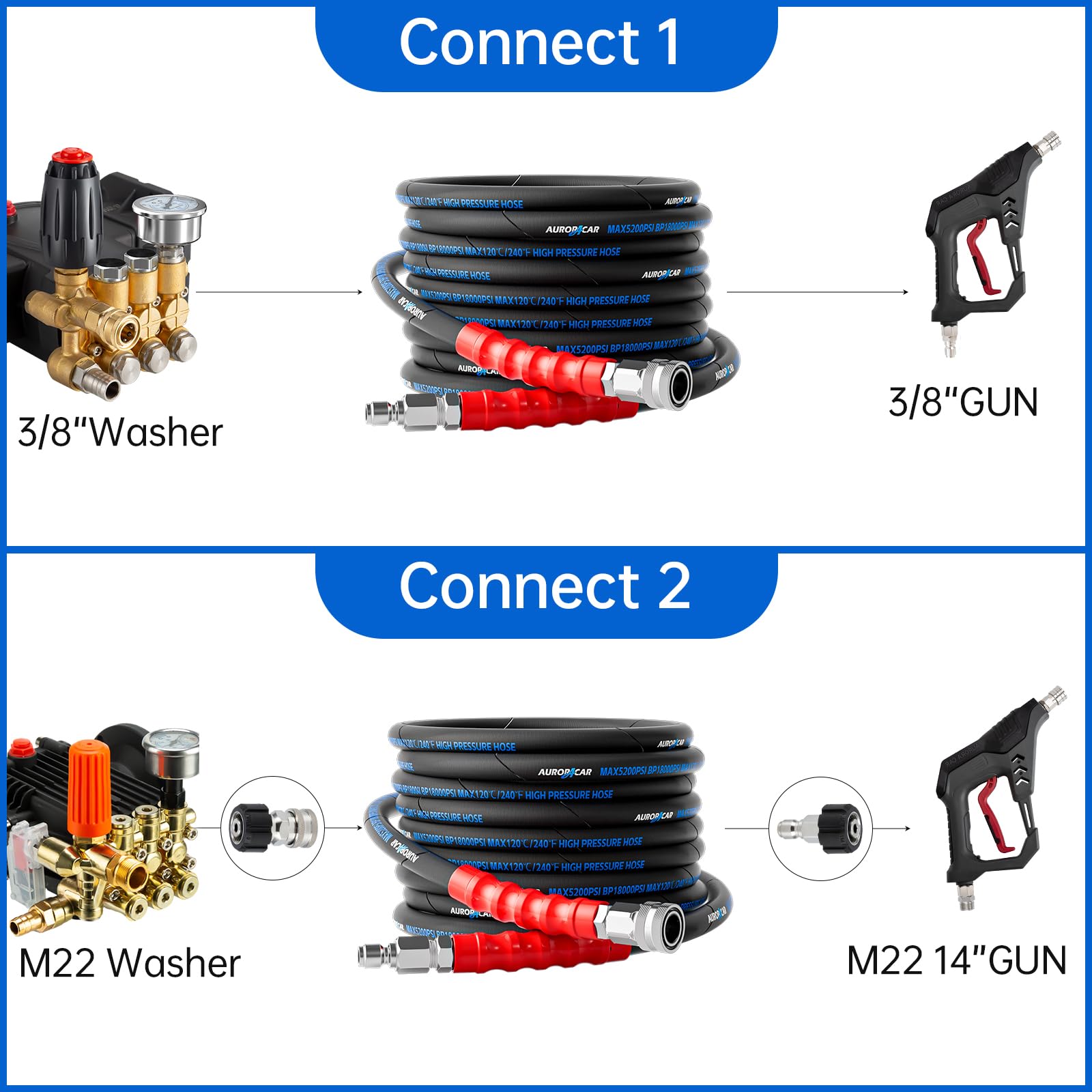 Upgraded Stainless Steel Fittings: High quality stainless Steel 3/8" quick connector is not easy to rust and deformation, always stays accurate connection without water leakage. Great replacement hose compatible with Simpson, Honda, Dewalt, Rigid, MTM, Troy Bilt, Champion, Generac, Craftsman, Powerstock and more gas power washers with 3/8" quick connect or M22-14mm thread outlet.