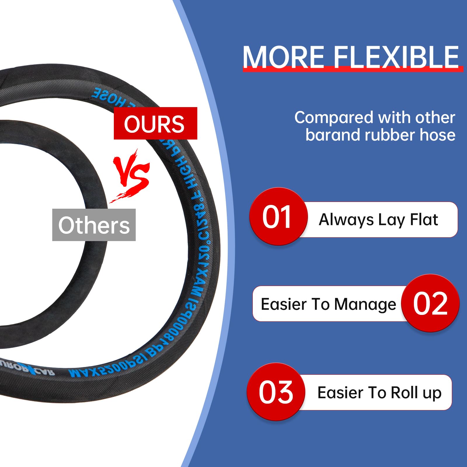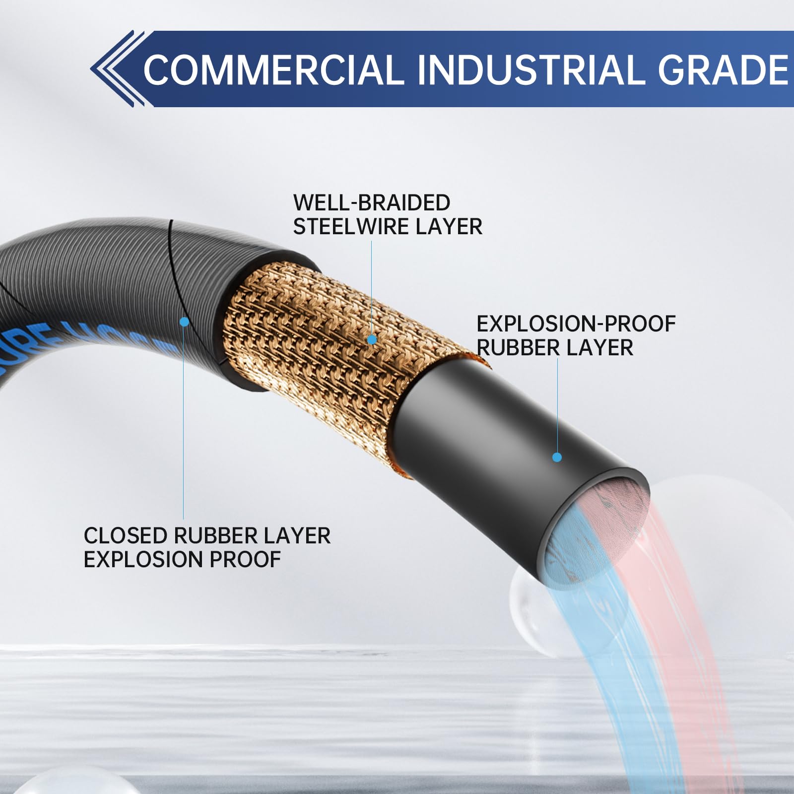 High Tensile Wire Braided Pressure Washer Hose 3/8" 25FT: Made of upgraded rubber and steel wire braided material. Its unique craftsmanship and innovative technology can extend its service life, ensure safe use, and be suitable for household cleaning and commercial purposes.
