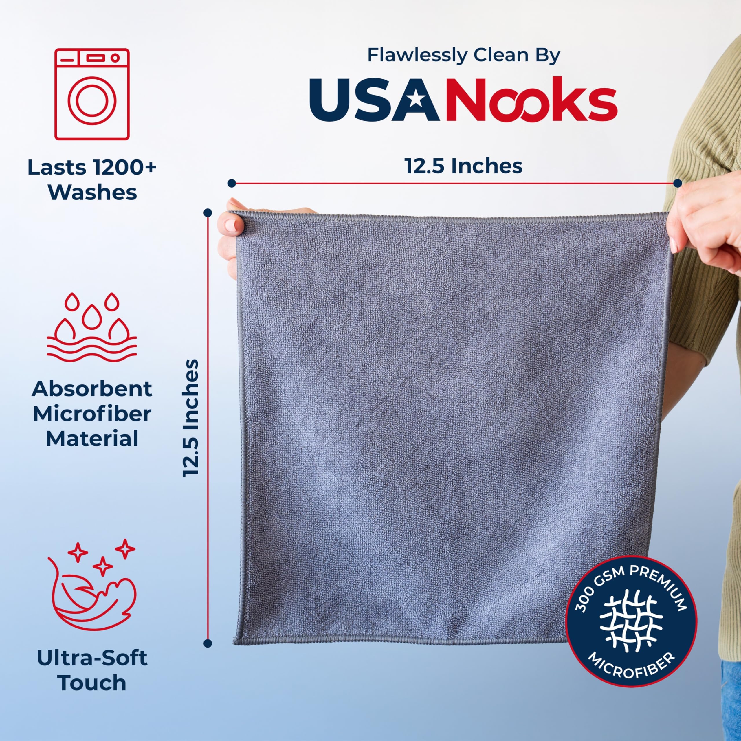 LASTS 1200+ WASHES - That’s 3.27 YEARS worth of use in this 50-pack of COMMERCIAL GRADE 300 GSM microfiber towels. The 2.5mm thickness and OVERLOCK BRAIDED STITCHING makes the ideal SUSTAINABLE SOLUTION for cleaning every SURFACE, crack, and CREVICE in your home, garage, or office.