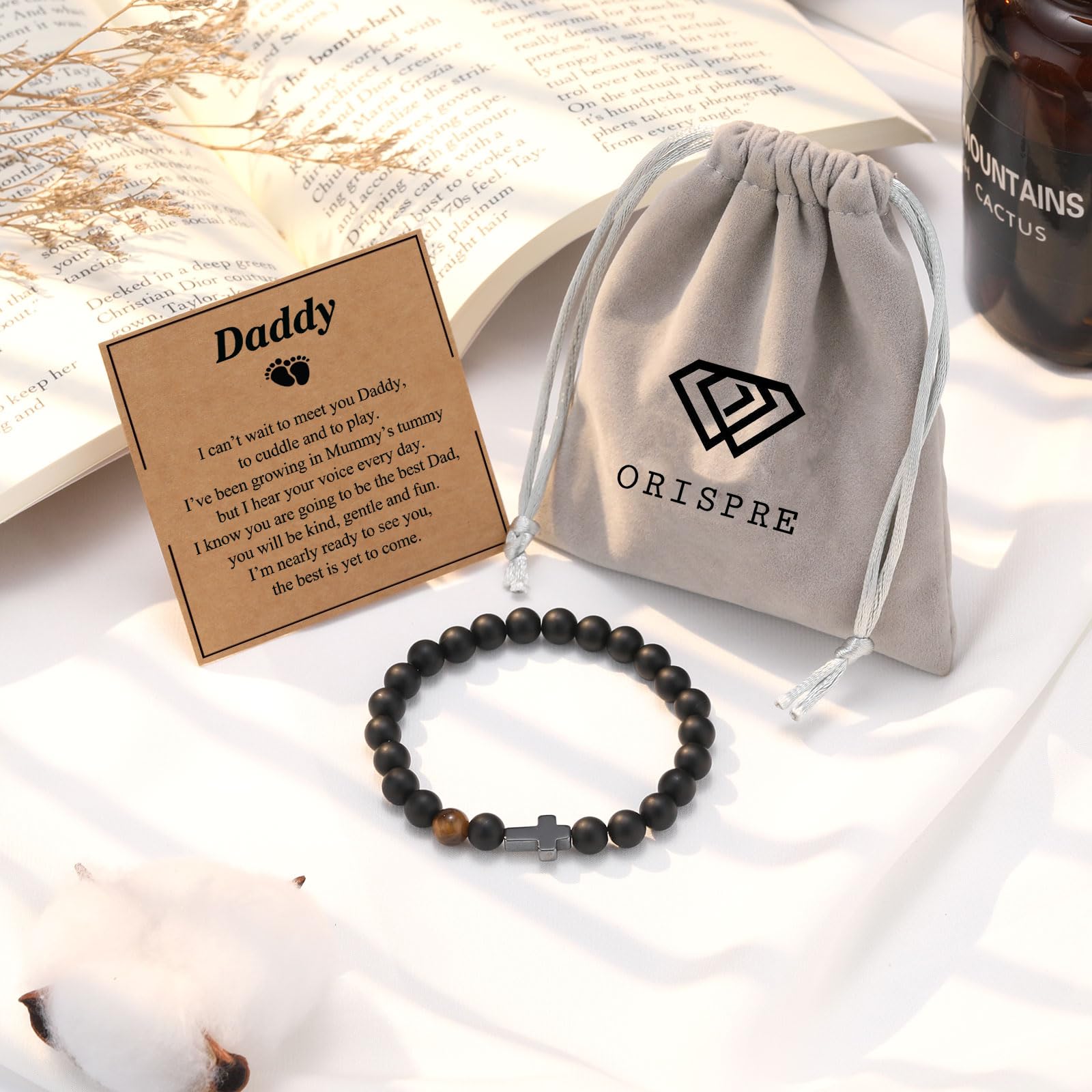 First Time Dad Gifts: This bracelet makes a present for a new dad to welcome him on this adventure. Natural stone combined with classic cross charm is designed for everyday wear. He's going to be so surprised!
