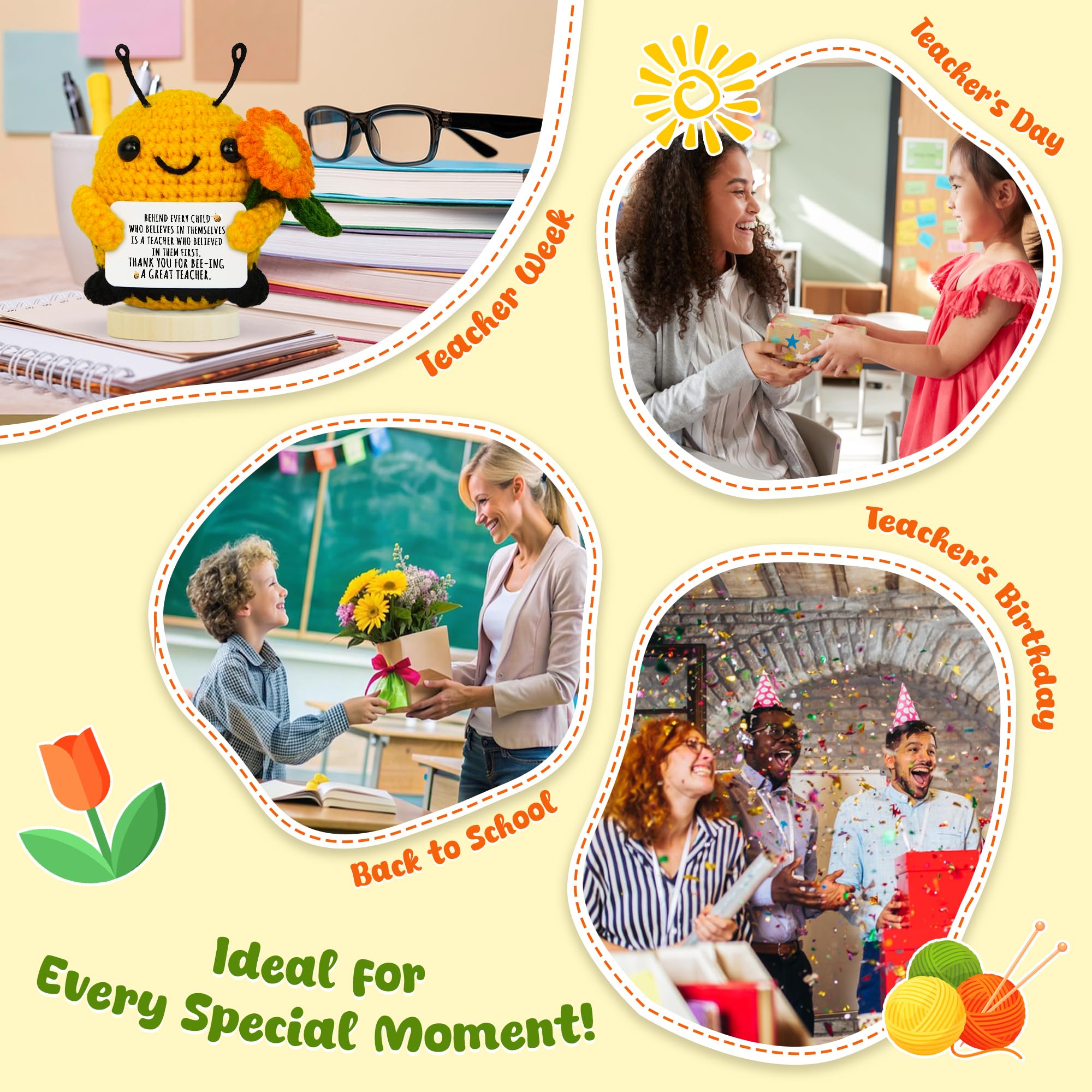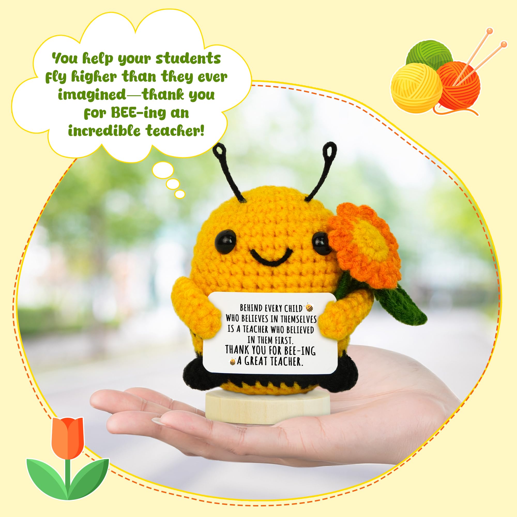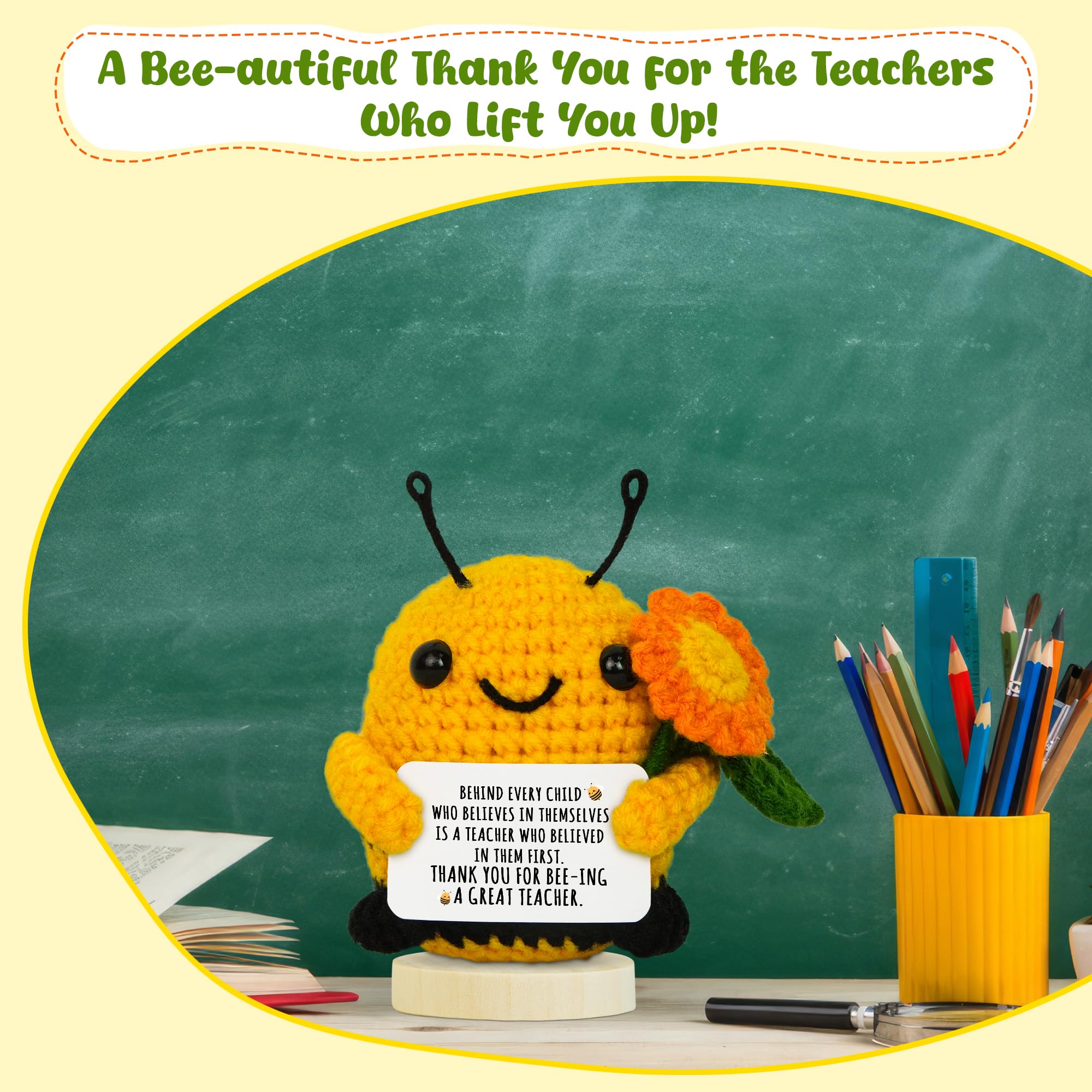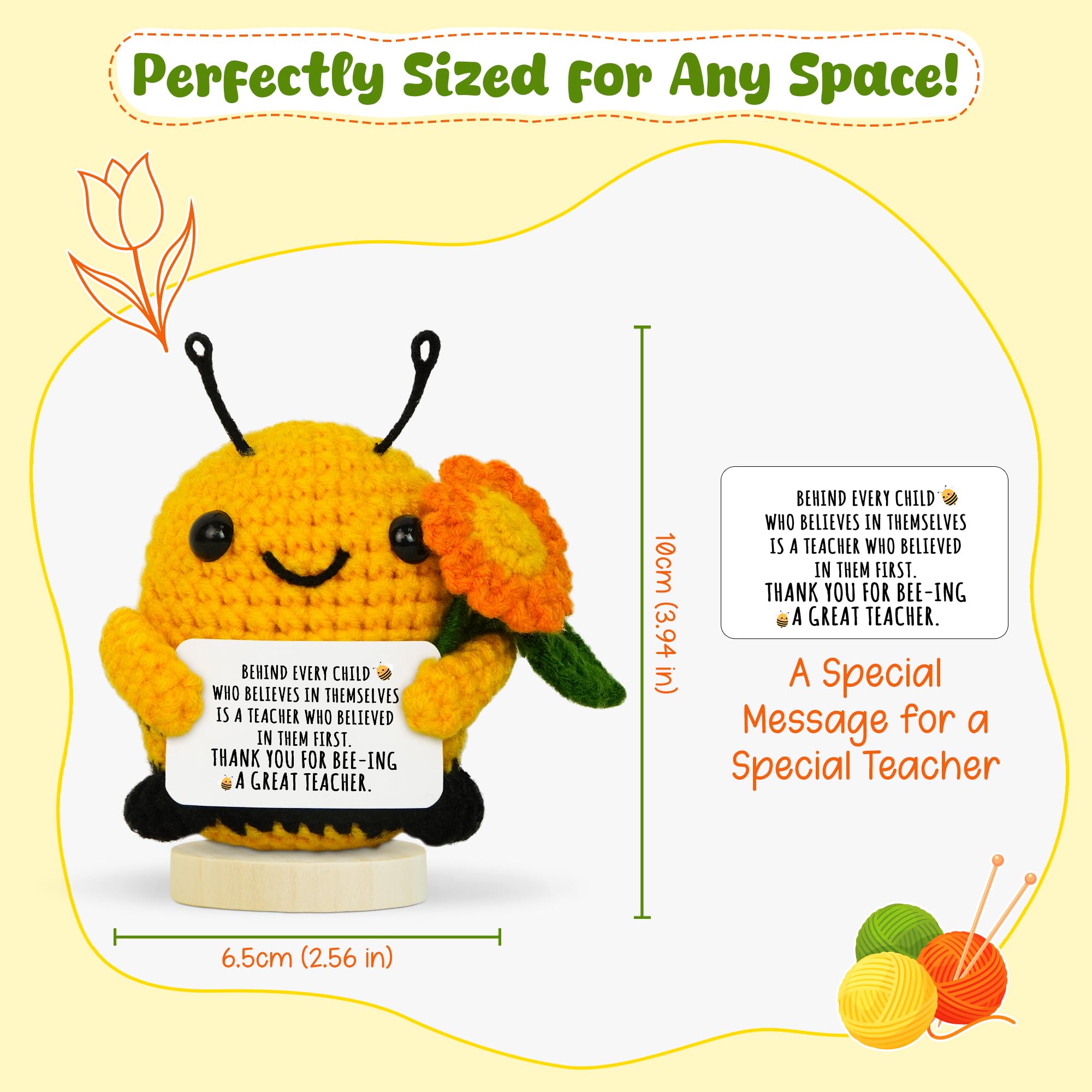 MESSAGE CARD FOR THOUGHTFUL TOUCH – This handmade bee crochet comes with a sturdy base and an appreciation card for teachers, making it a meaningful keepsake. A charming addition to a desk, shelf, or classroom, it brings warmth and gratitude to any space. Compact and lightweight, it keeps your appreciation close at hand wherever she goes.