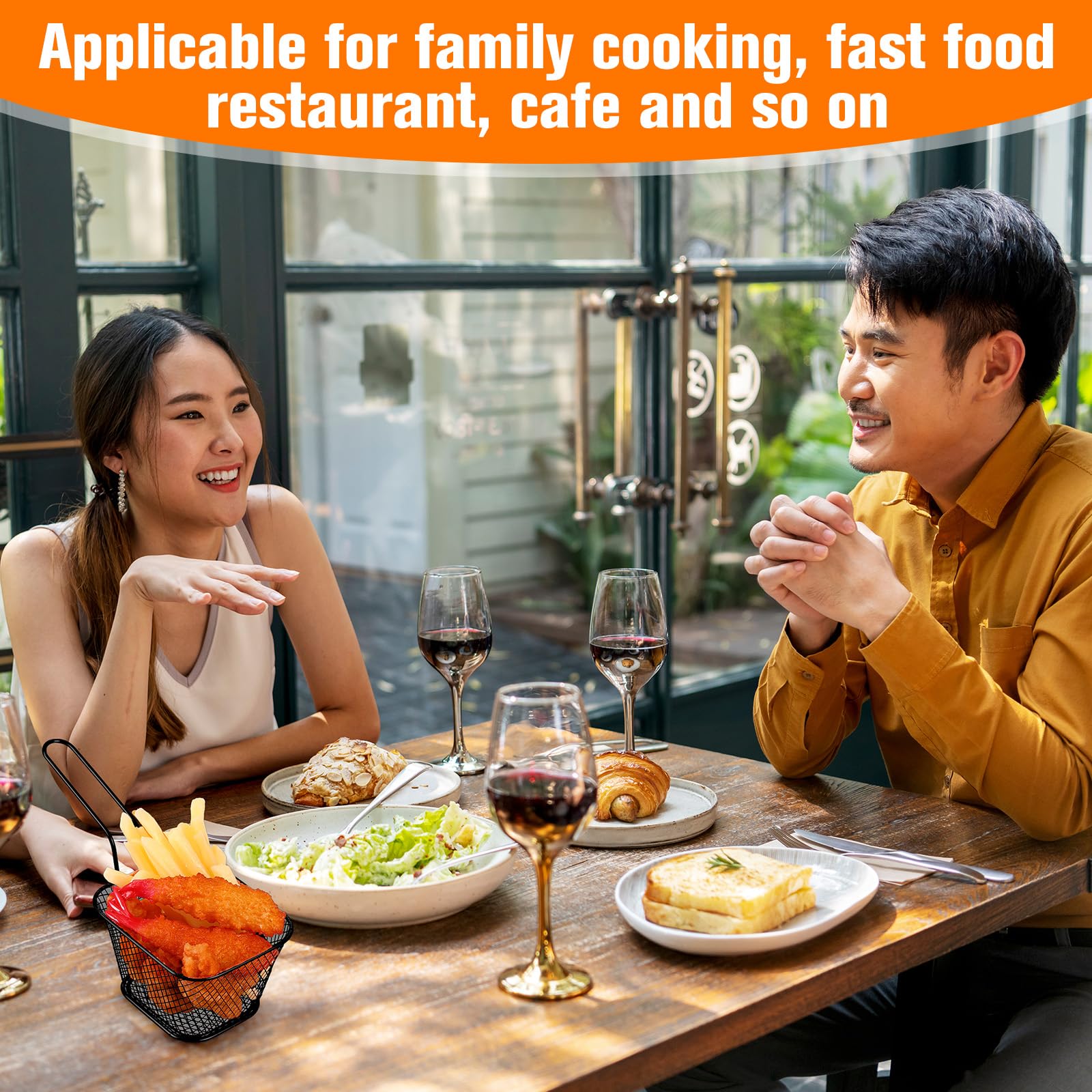 Wide Applicable Ranges: the fry baskets with handle have a wide range of application, suitable for frying most kinds of chips, french fries, onion rings, fried chicken, chicken feet, steak, shrimp and more fried snacks, applicable for family cooking, fast food restaurant, cafe, barbecue, outdoor camping and so on