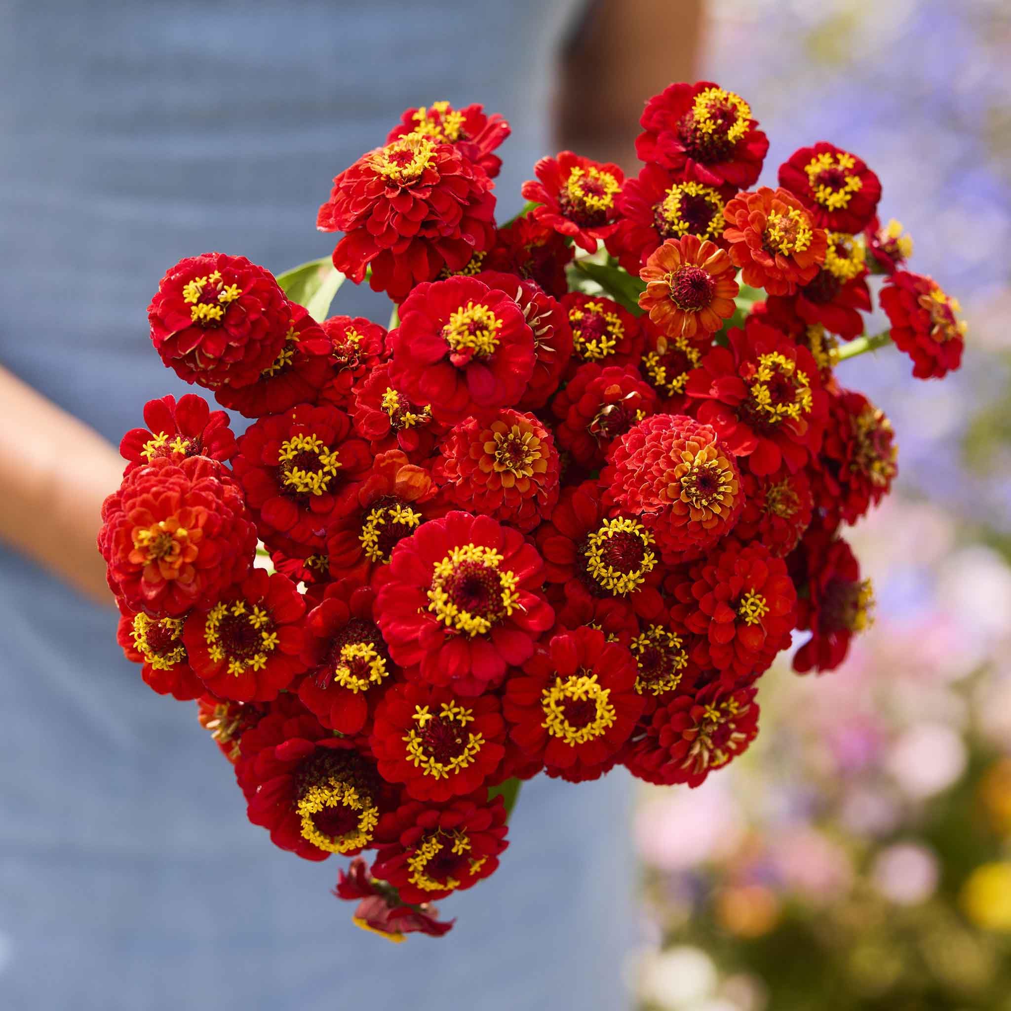 Easy to Grow – These Zinnia seeds produce pop-pom shaped, red-orange blooms that add a playful touch to bouquets and will grow up to 24" tall.