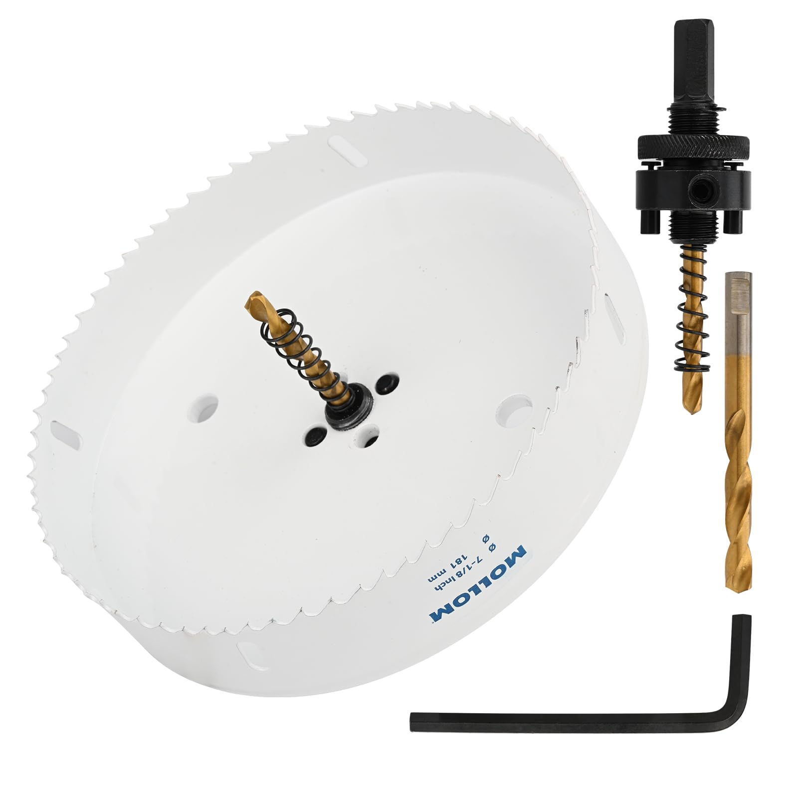 【Dimension】Cutting Dia: 181mm | 7-1/8";Shank Dia: 11mm | 7/16",BI hole saw over 51mm require stronger shank to ensure more security;Hole Saw Depth : 38mm | 1-1/2".Adopting raw materials of Japanese brand sawbands