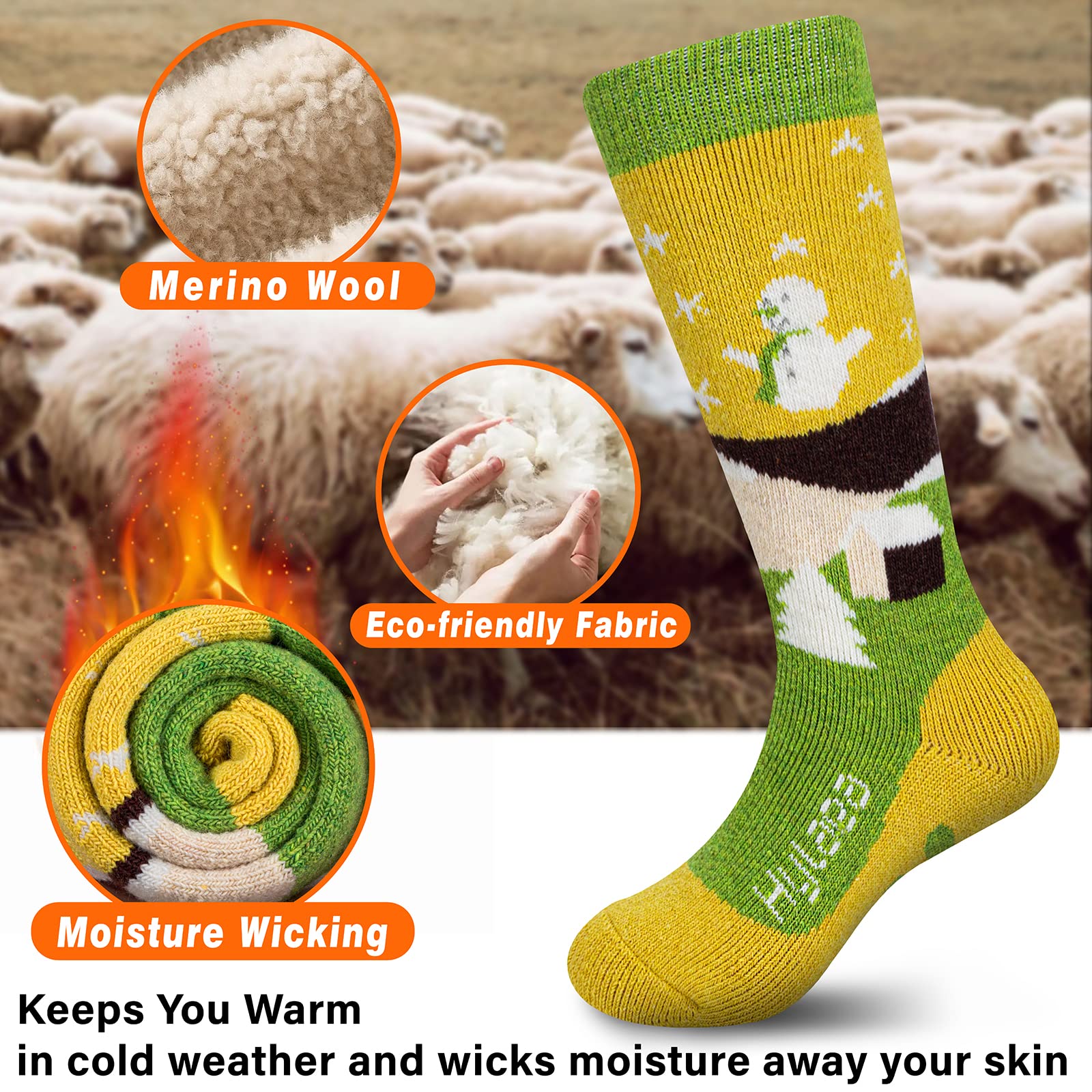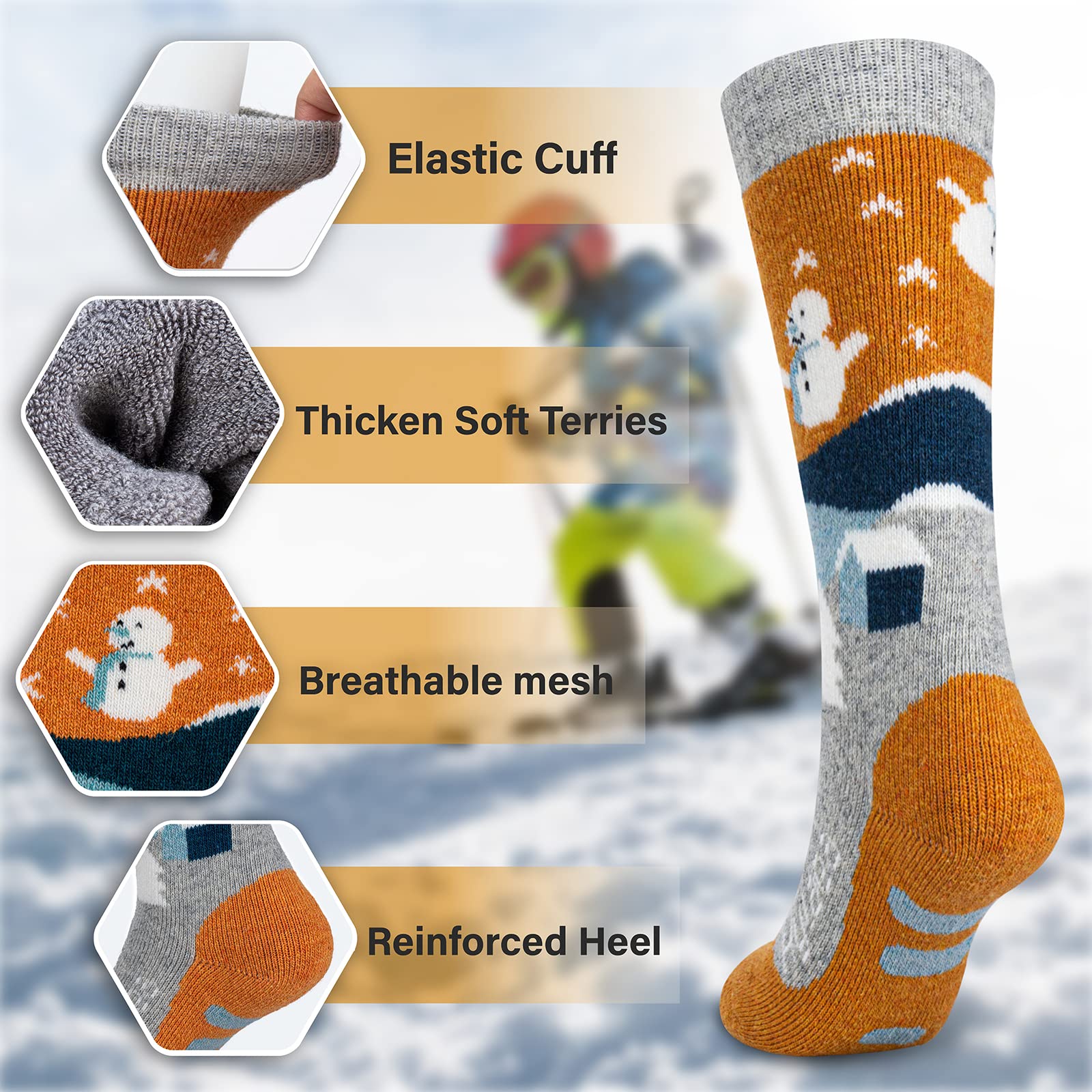 Merino wool Socks for boys and girls: These kids skiing socks are made from merino wool, a breathable, odor resistant, moisture wicking and thermal fabric, which can keep your kid’s feet warm in cold weather to enjoy more outdoor activities in winter