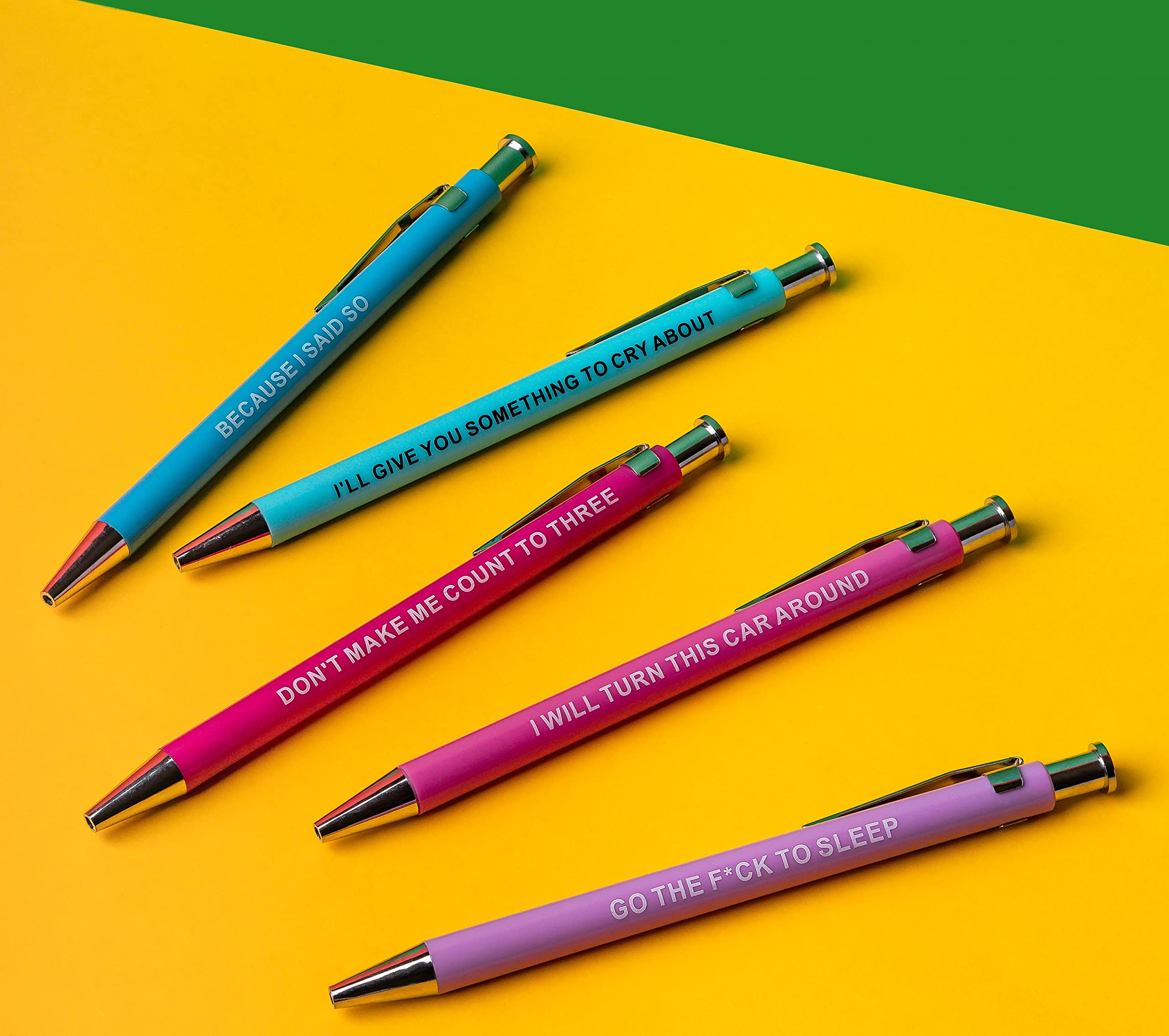Relatable Parenting Humor: Each pen comes with a witty saying every parent can relate to—because laughter is cheaper than therapy.