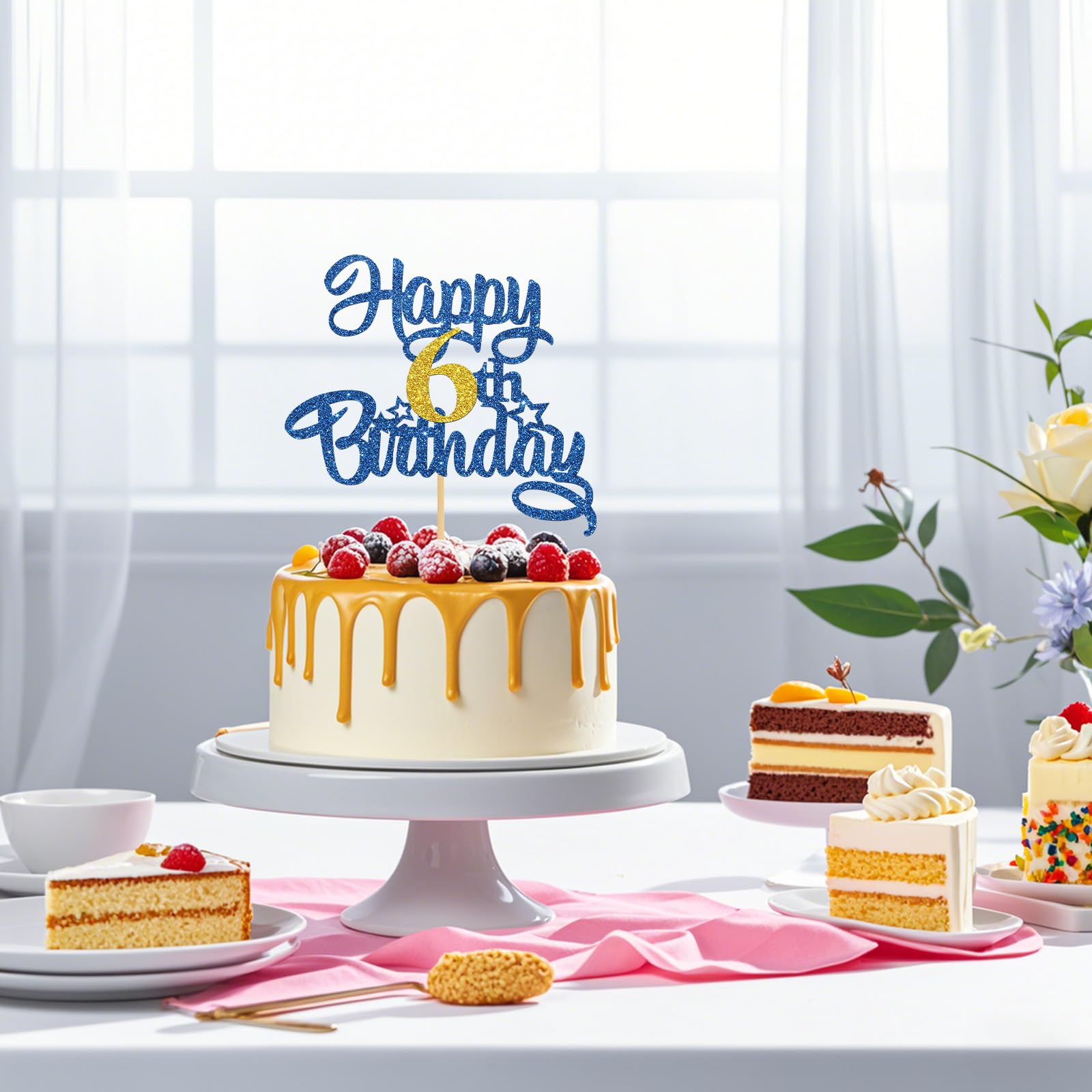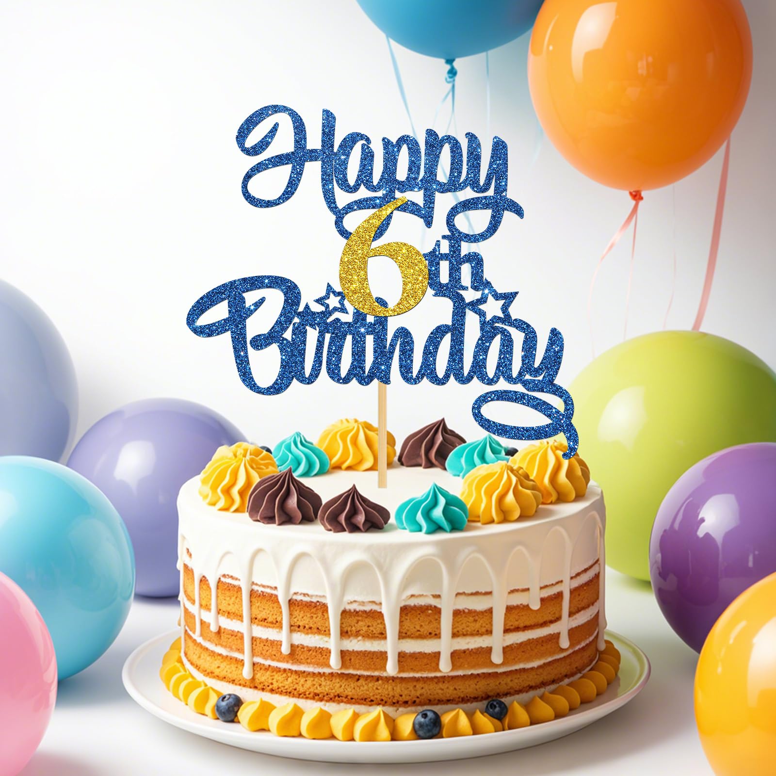 🎐【What You Will Get】One piece blue glittery cake topper, which can bring more fun to your party!