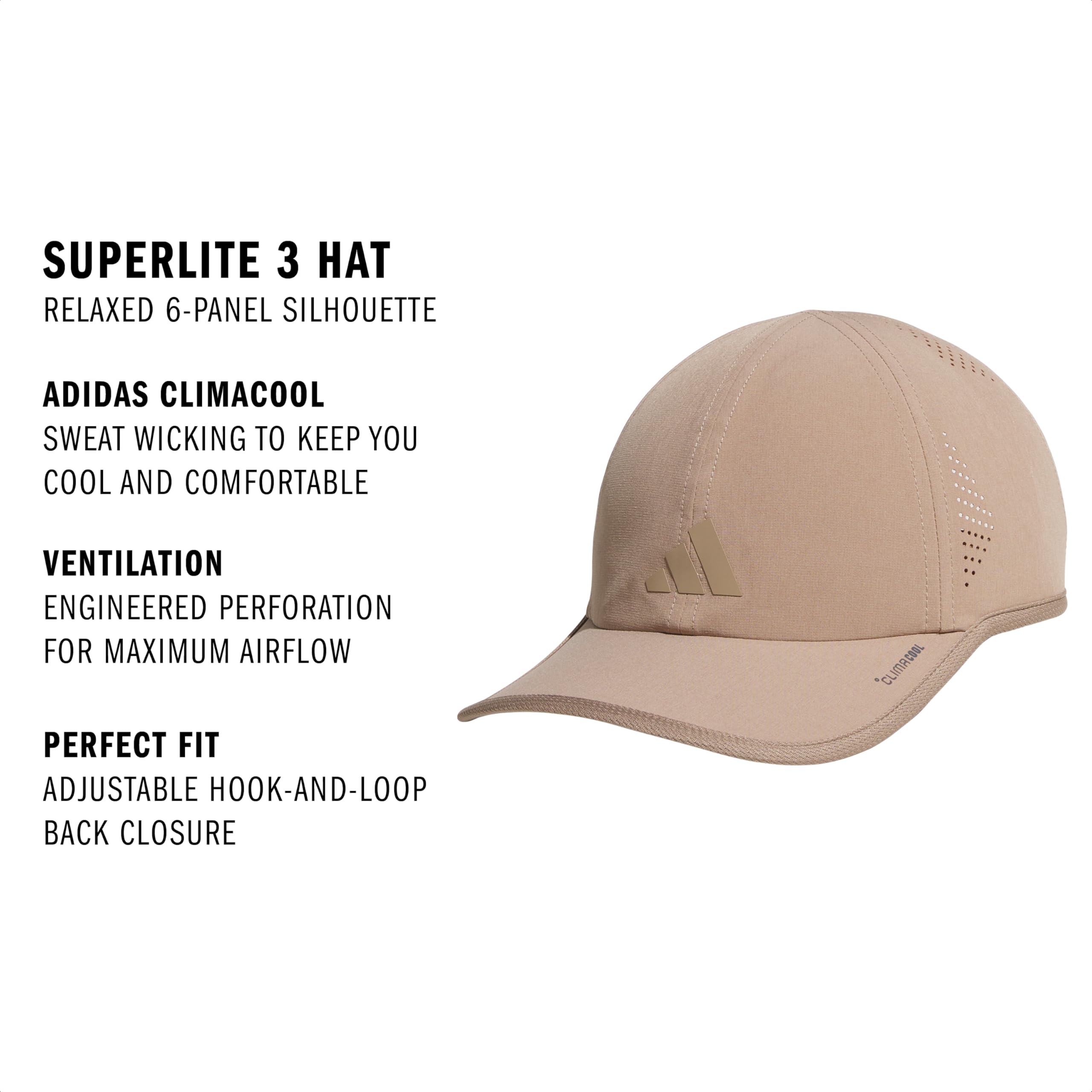 Description Designed with the active man in mind, this adidas Superlite hat for men offers both style and functionality. Crafted from recycled materials, these adidas men's caps are part of a conscious effort to maintain environmental responsibility while providing top-notch headwear. The lightweight 6-panel construction includes a premium 3D adidas logo, making it a standout addition to any wardrobe. Featuring mesh panels for airflow and moisture-wicking capabilities, this hat helps you stay cool and dry, whether you're training or relaxing. The non-glare lining under the visor enhances vision on sunlit days, and with UPF 50 sun protection, these caps shield against the sun’s most harmful rays. The adjustable hook-and-loop back closure offers a customizable fit, making sure the one-size design meets your comfort needs. Although the reflective elements add a sleek design touch, please note they are not intended for personal protective equipment use.