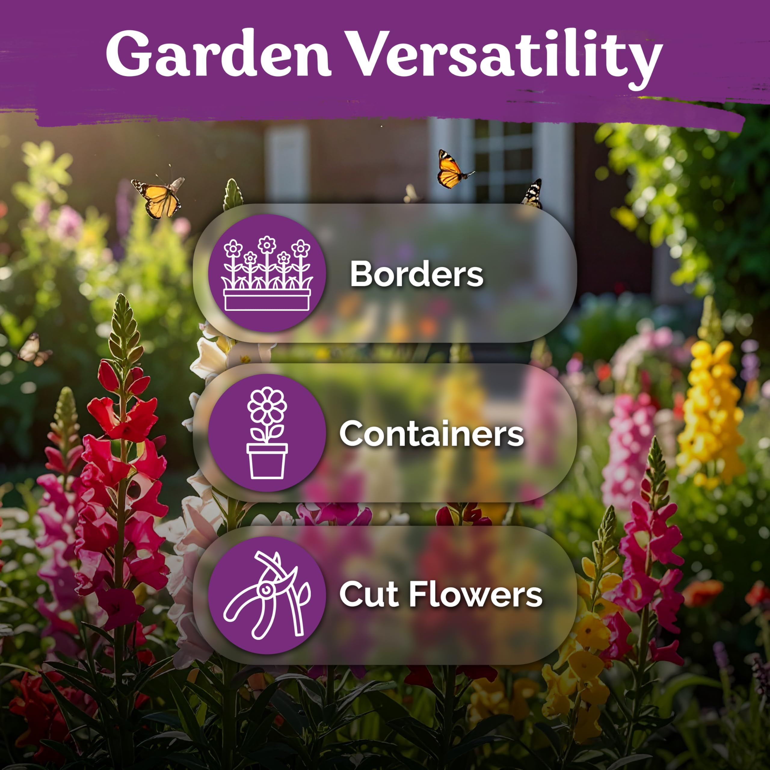 Multi-Purpose Beauty: Snapdragons attract bees, hummingbirds, and butterflies while repelling deer. Mix them with your pollinator seed mix for vibrant displays in containers or live plants outdoor.