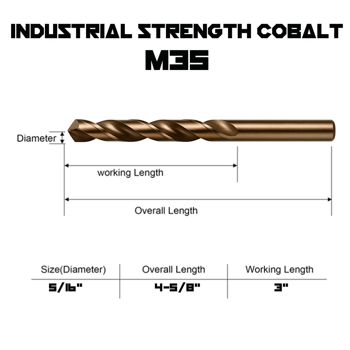 M35, FULLY GROUND, 135° SPLIT POINT - Our Drill Bits Contain 5% Cobalt, Are Fully Grounded for a Precision Drilling Diameter. 135° Split Point Design Makes it Easier to Drill Repeated Holes in Harder Materials.