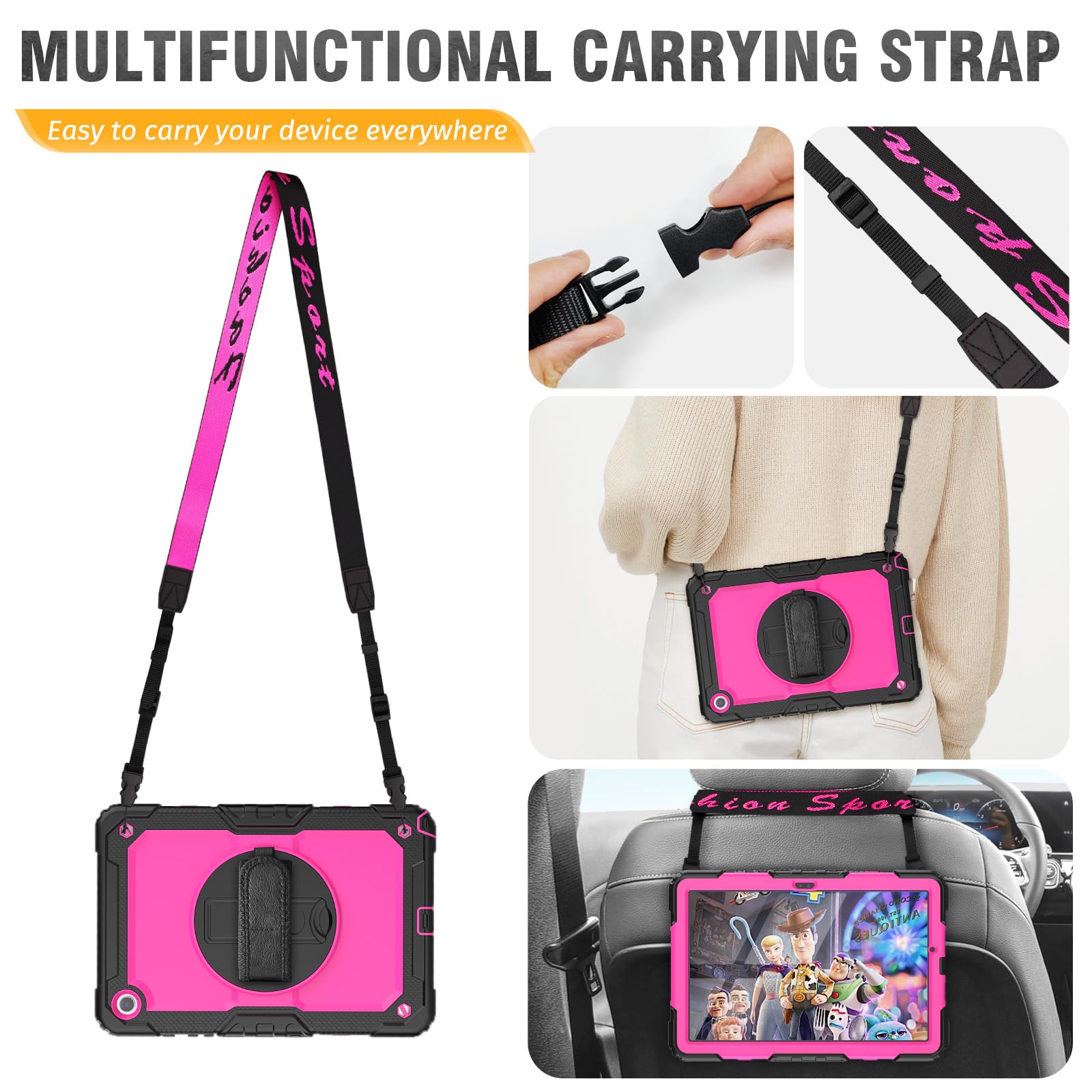 Shoulder Strap & Pen Holder — Detachable and adjustable shoulder strap, easy to carry the tablet around. Especially ideal for traveling! You can hanging it on the back of the seat use as a TV! The Magnetic Pencil holder can always keep the pen secure in place.