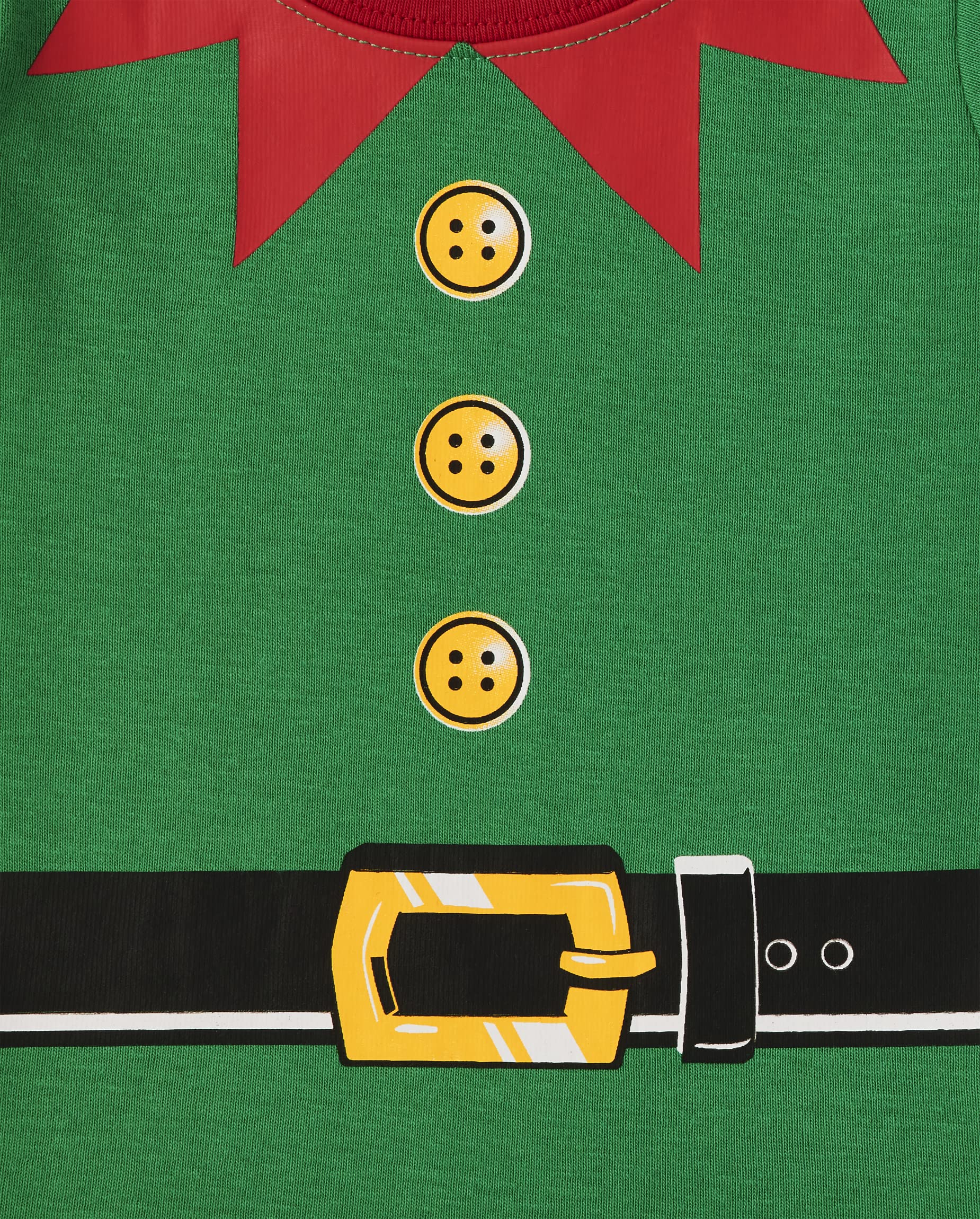 PAJAMA TOP — Features long sleeves, rib-knit crew neck and sleeve cuffs and elf suit graphic design at front