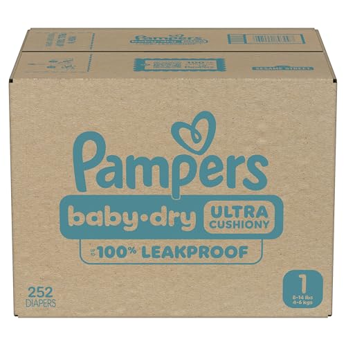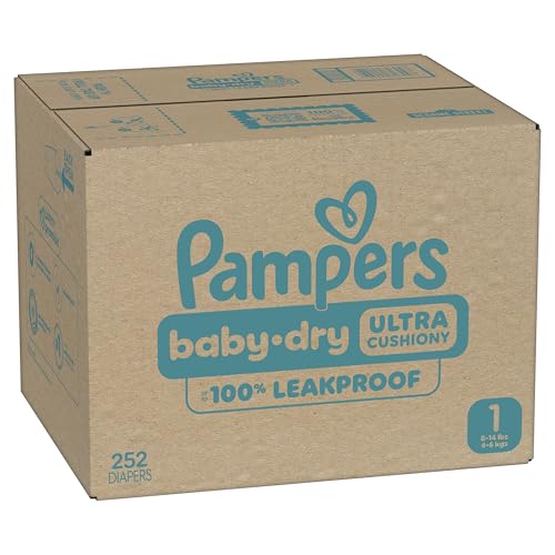 Pampers Diapers - Baby Dry - Size 1, 252 Count, Absorbent Disposable Infant Diaper