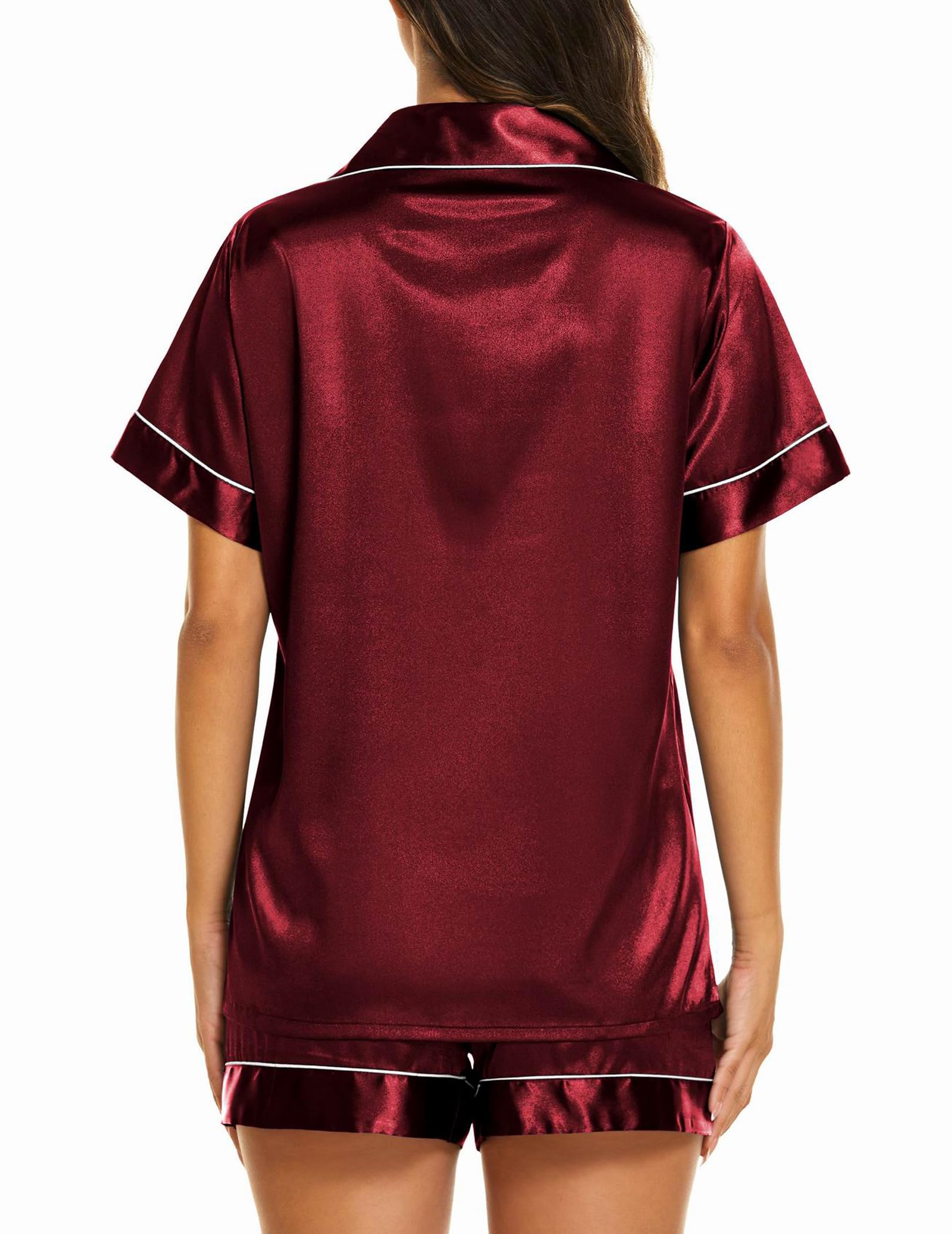 Material:Satin pajama set is crafted from premium silky satin fabric (95%Polyester+5%Spandex). Ultra-soft, silk touch,skin-smoothing feel, comfort Ekouaer sleepwear