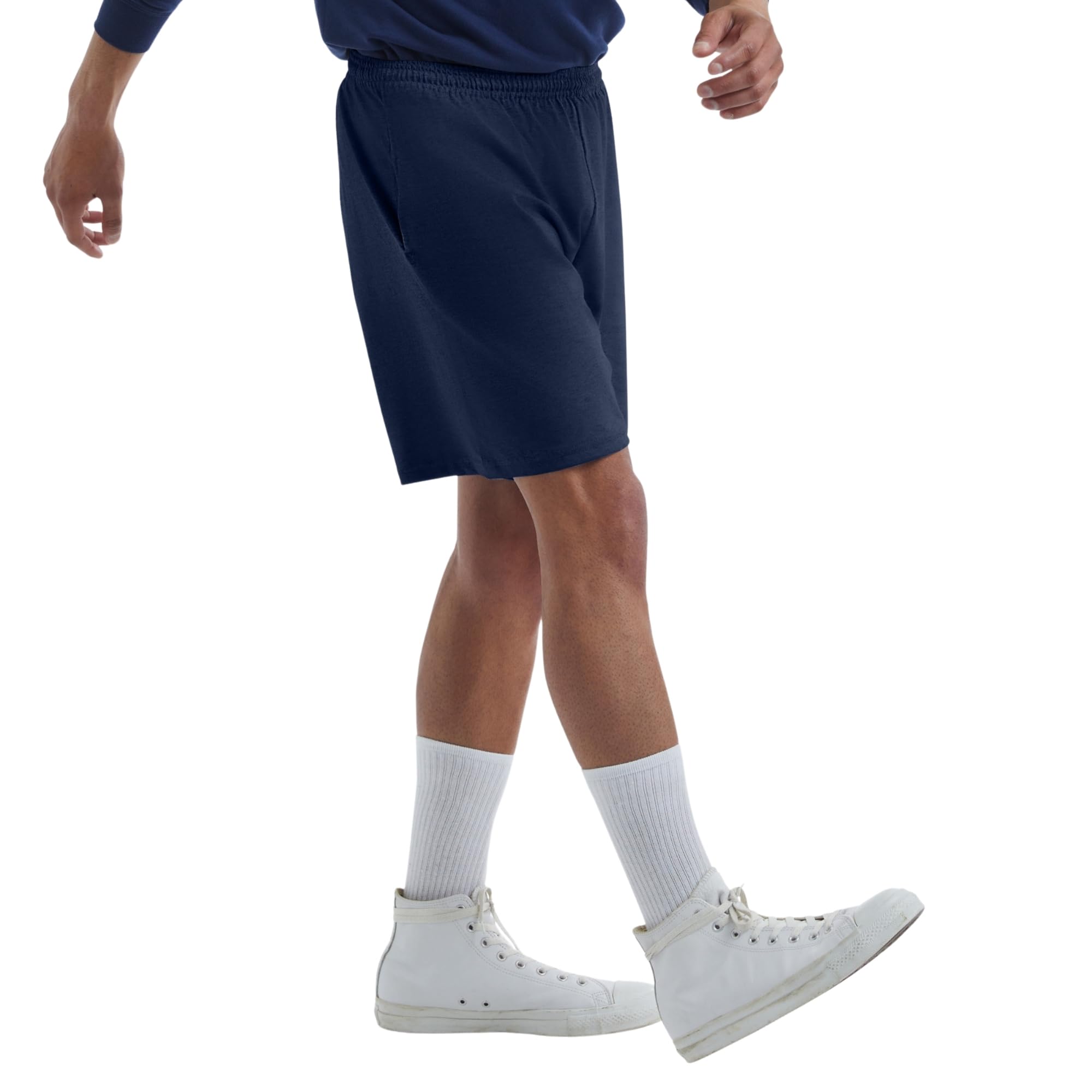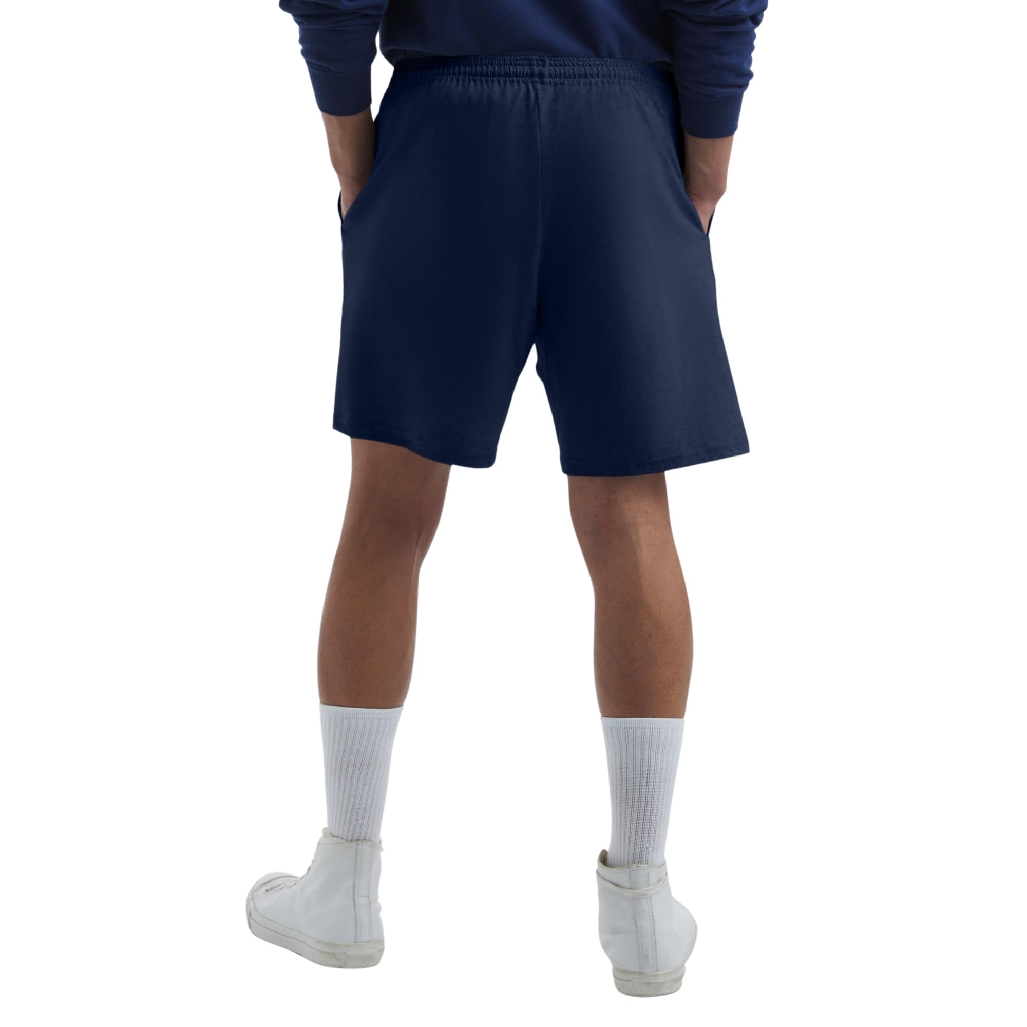 Description It's no wonder these cotton jersey shorts from Hanes® for men are bestsellers. These ultra-versatile knit shorts are just the thing to slip into after work, to wear to the gym, to relax in on movie night, or even to wear to bed. Simply styled, they pull right on, with an elasticized waist and adjustable interior drawstring. Handy side pockets hold keys and other essentials. These pull-on lounge shorts are a mid-thigh length with a 7.5" inseam. We suggest having several pairs of these comfortable cotton jersey shorts on hand. You'll wear them again and again.