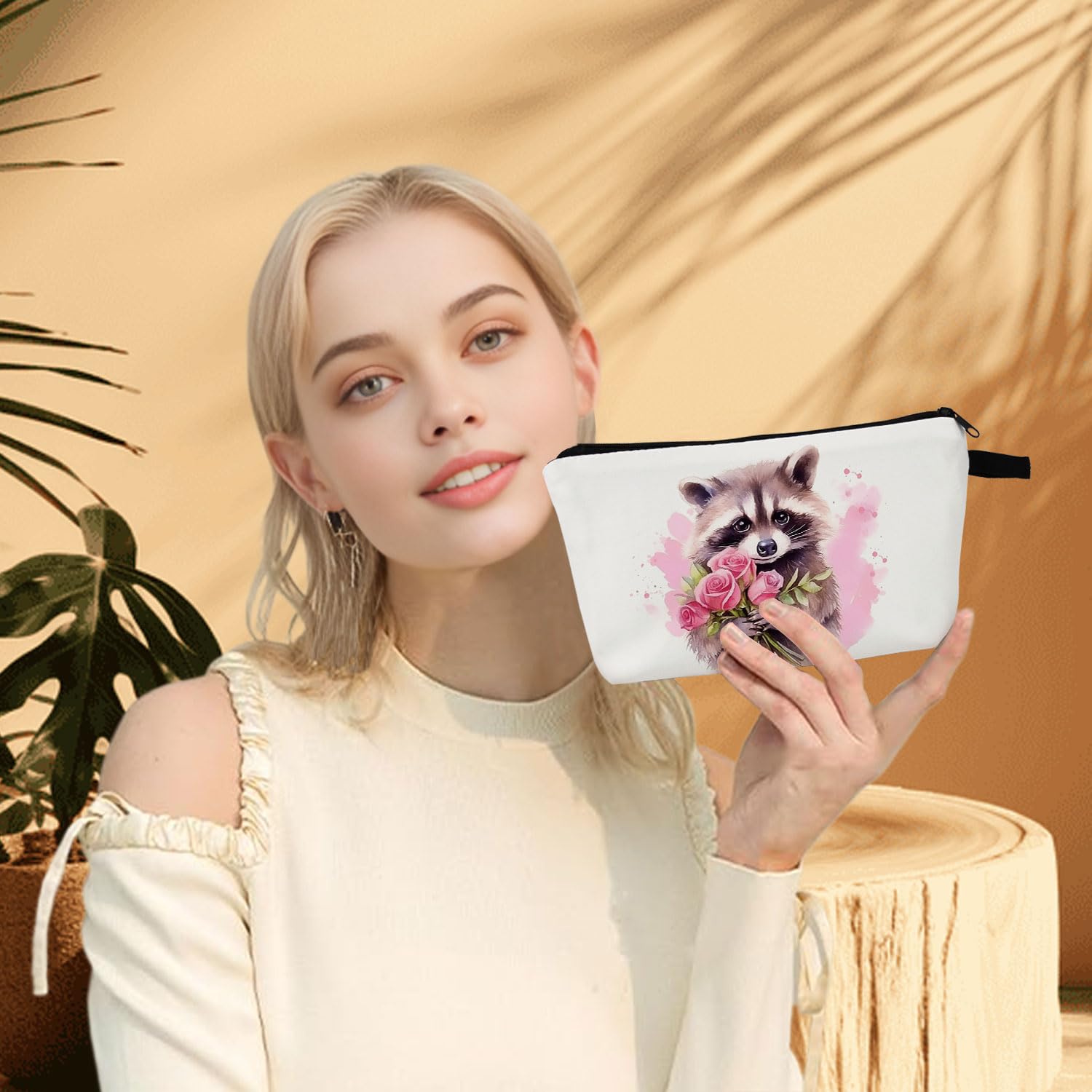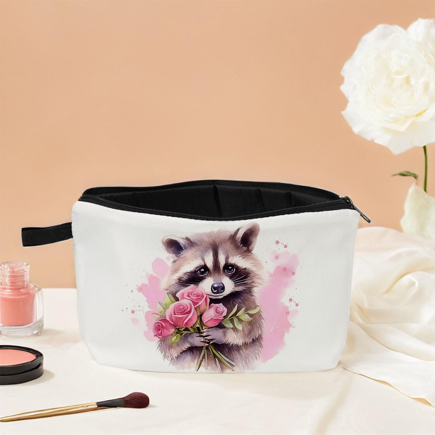 Material: Our Raccoon printed makeup bag is crafted from polyester with a sponge-lined fabric, incorporating a thickened inner layer that offers effective cushioning and protection for cosmetics, while the surface remains comfortable and resistant to pilling.