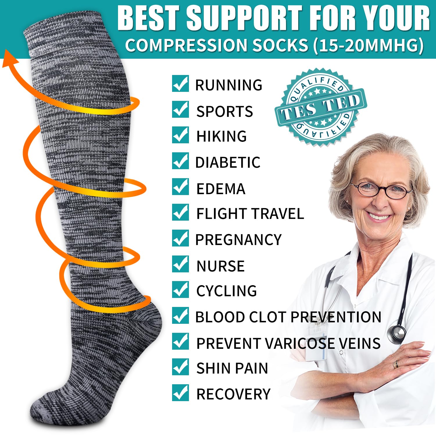 UPGRADE YOUR COMPRESSION SOCKS DRAWER! - With all the tasks of work and family (and of life itself!) we may forget to pay attention to and maintain the health of our legs. Our compression socks are designed to help increase circulation, improve leg and foot comfort, and reduce soreness and swelling, increase energy, All day comfort.Great for long periods of sitting or standing, endurance sports, flying and travel, post-workout recovery, pregnancy, and spider & varicose veins.