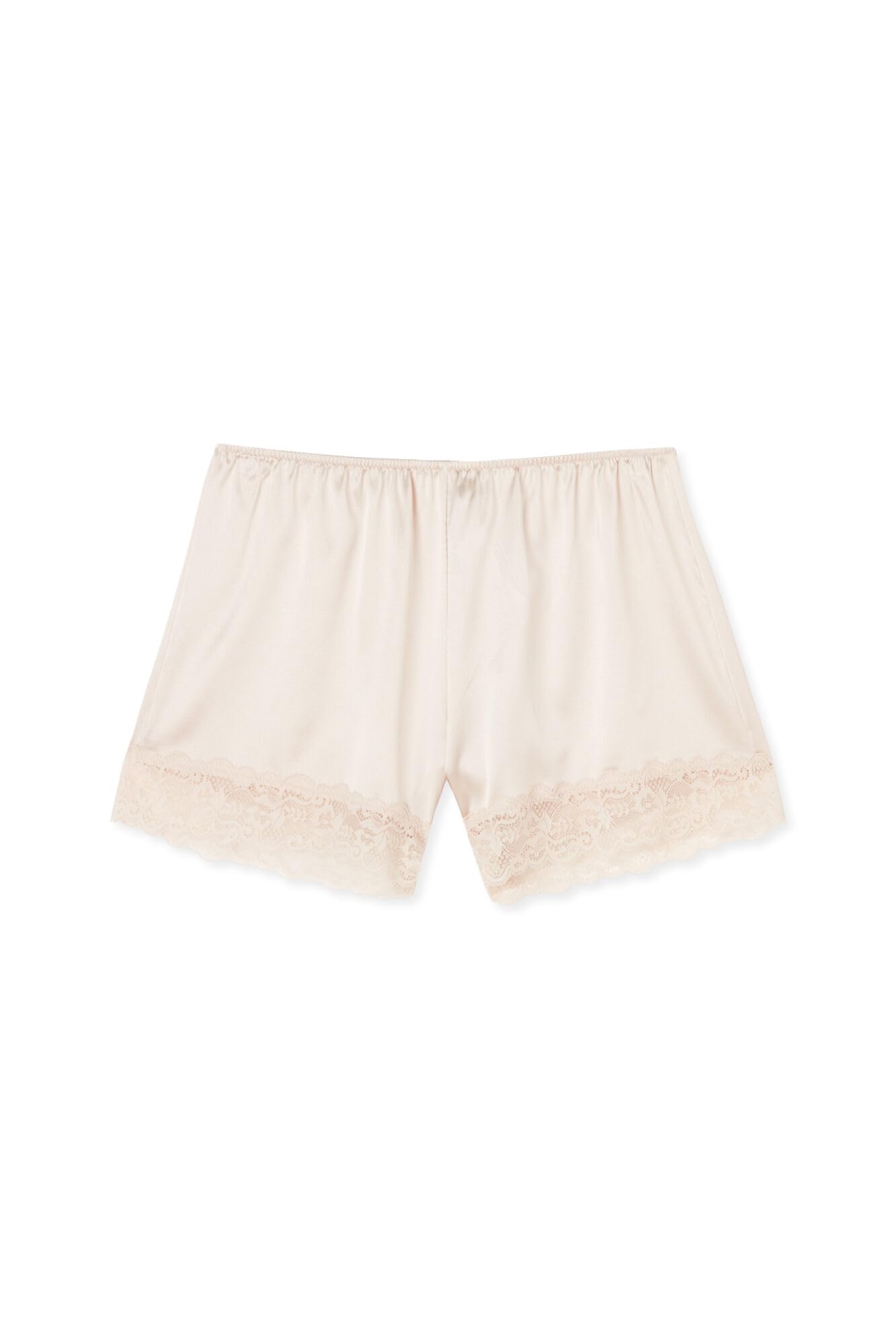Description Shorts in light stretch silk satin with small side slits. Ideal to wear as a refined pair of shorts for night or as elegant loungewear.